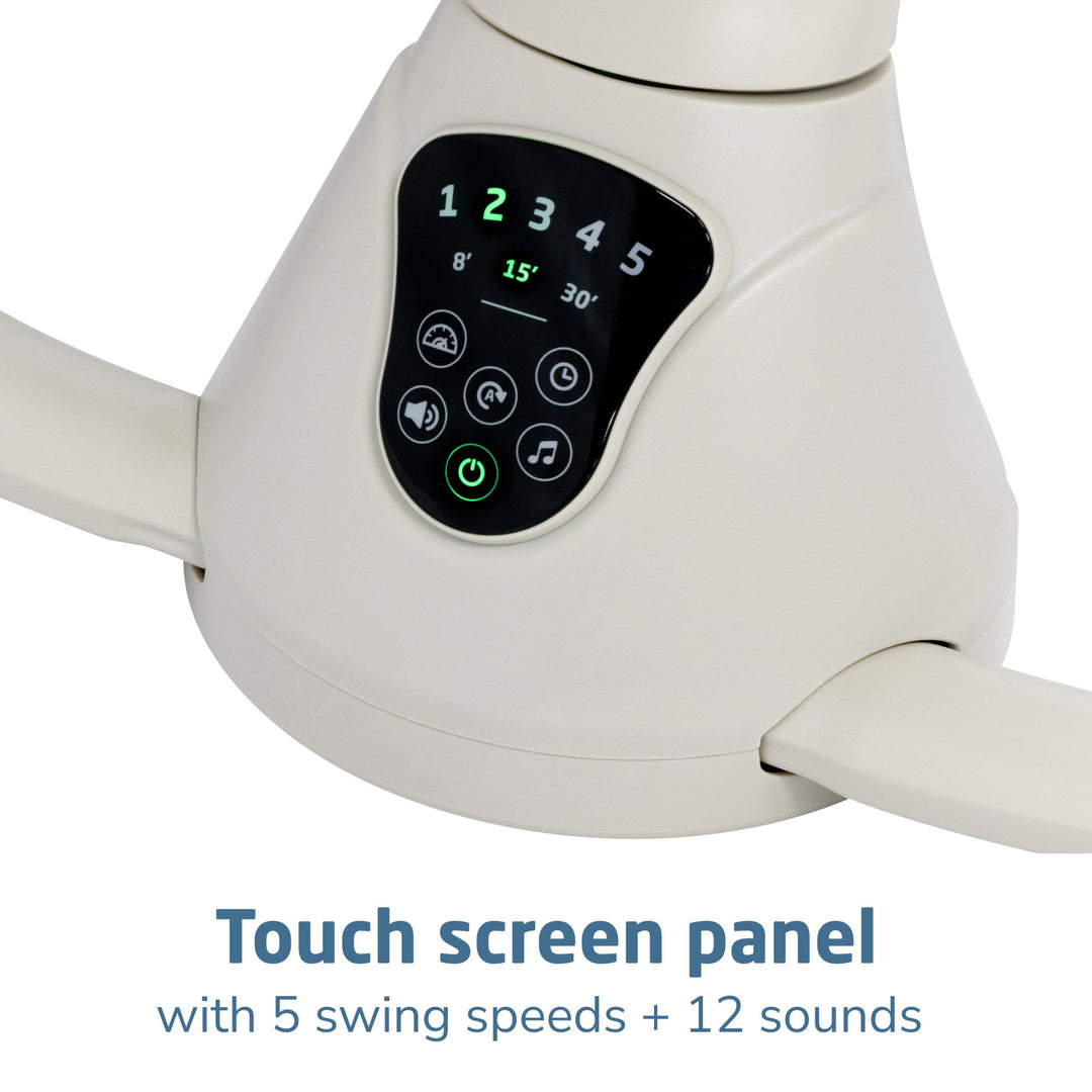 Makes adjusting between the 5 swing speeds, 12 soothing melodies and nature sounds a breeze without disturbing baby.