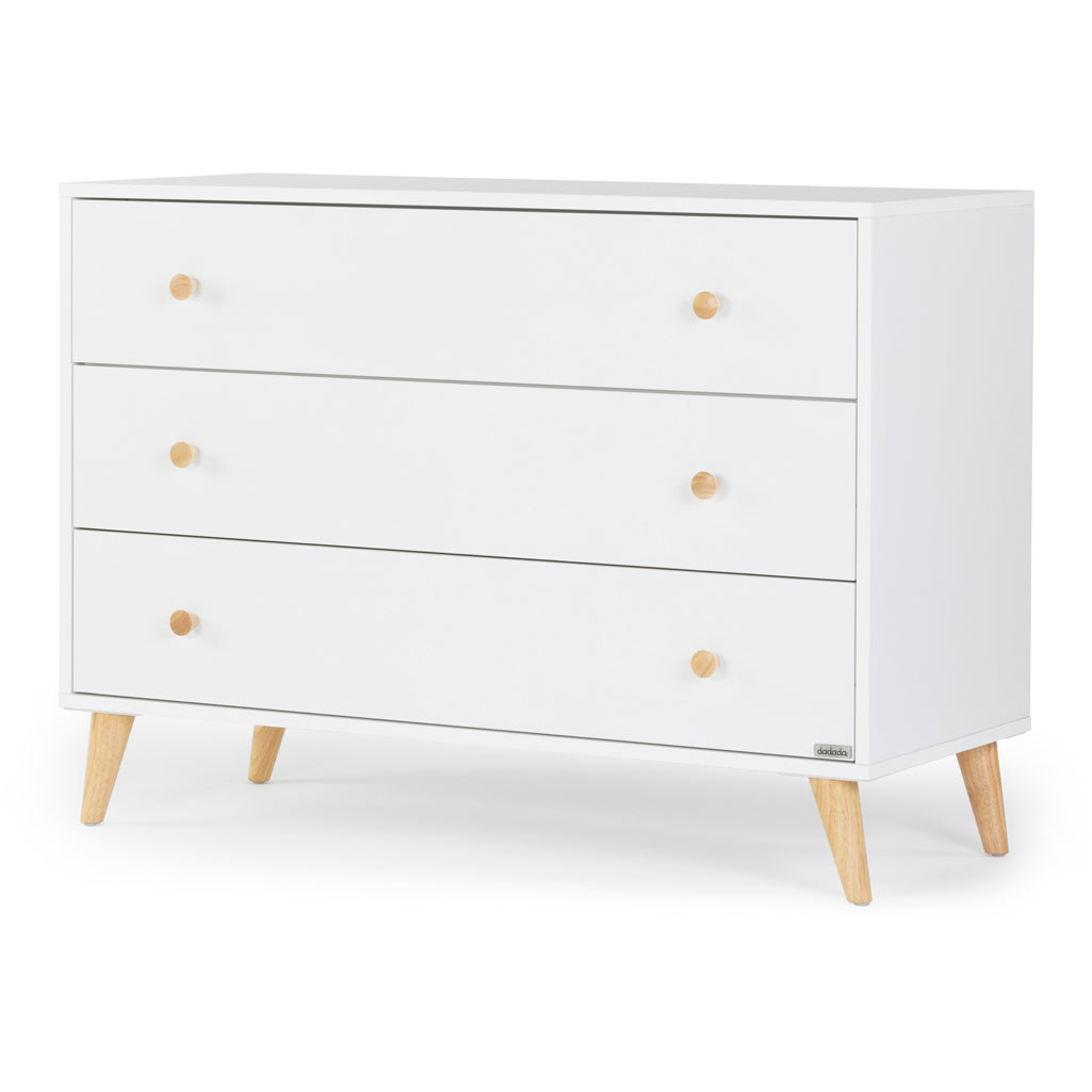 The dadada Austin 3-Drawer Dresser is a sleek, functional storage solution for your baby's nursery. It's low profile and subtle detail make it fit in to any aesthetic. Made with solid wood and reinforced with forged steel, it'll last your baby through childhood.