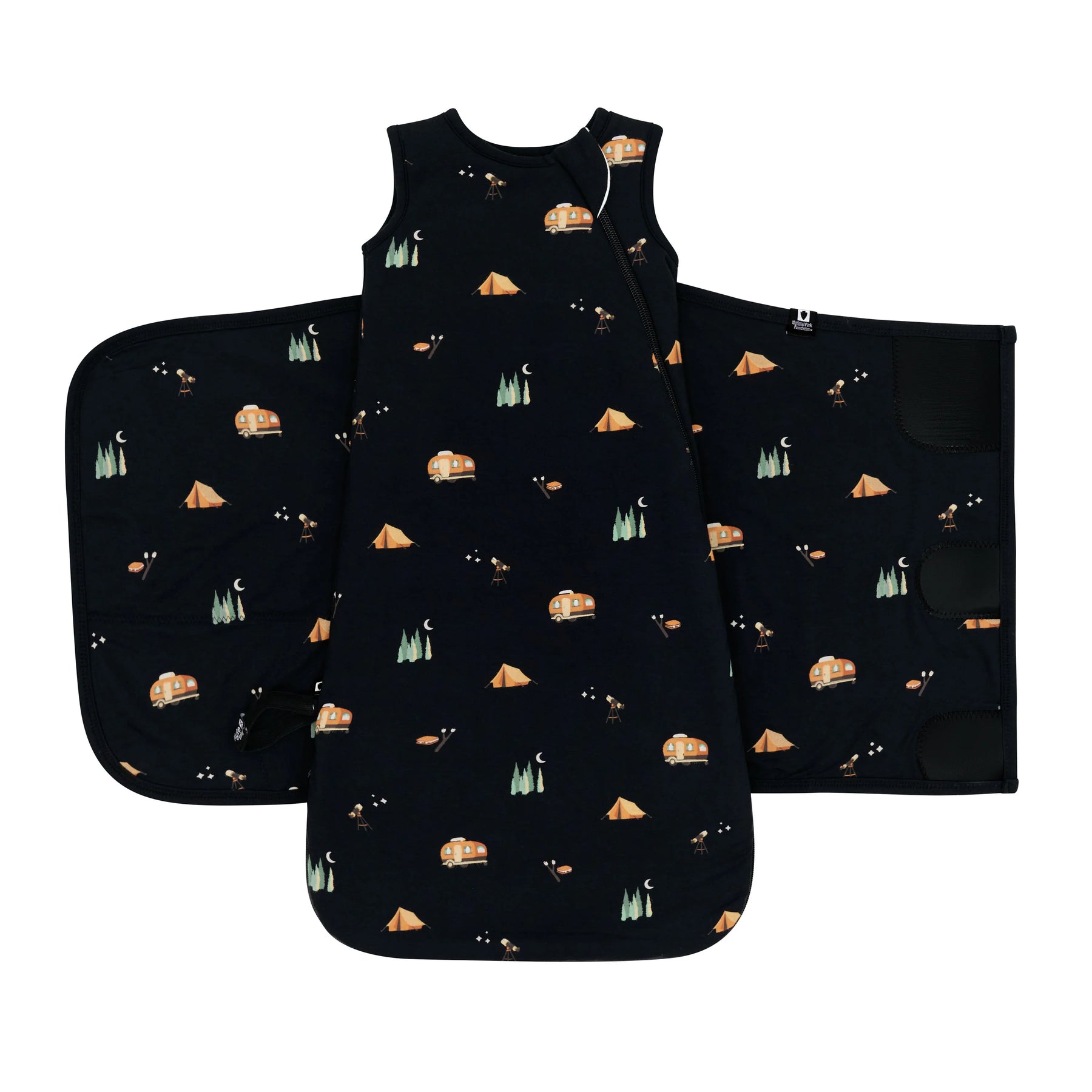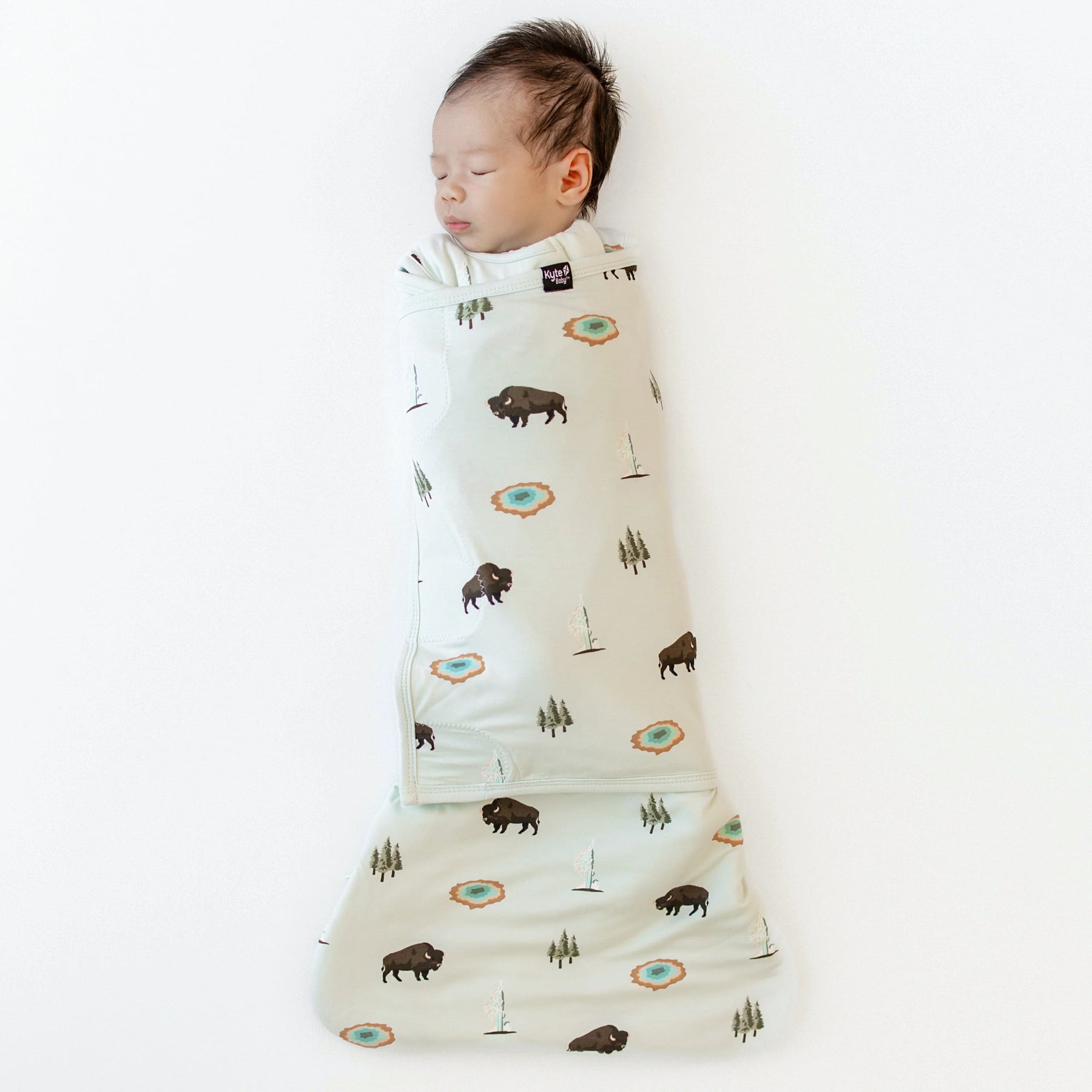 The Kyte Baby Sleep Bag Swaddler offers an all-in-one sleep solution, providing comfort from the newborn stage and beyond. Made from a blend of 97% rayon made from bamboo and 3% spandex, this swaddler functions both as a swaddle and a 1.0 sleep bag.