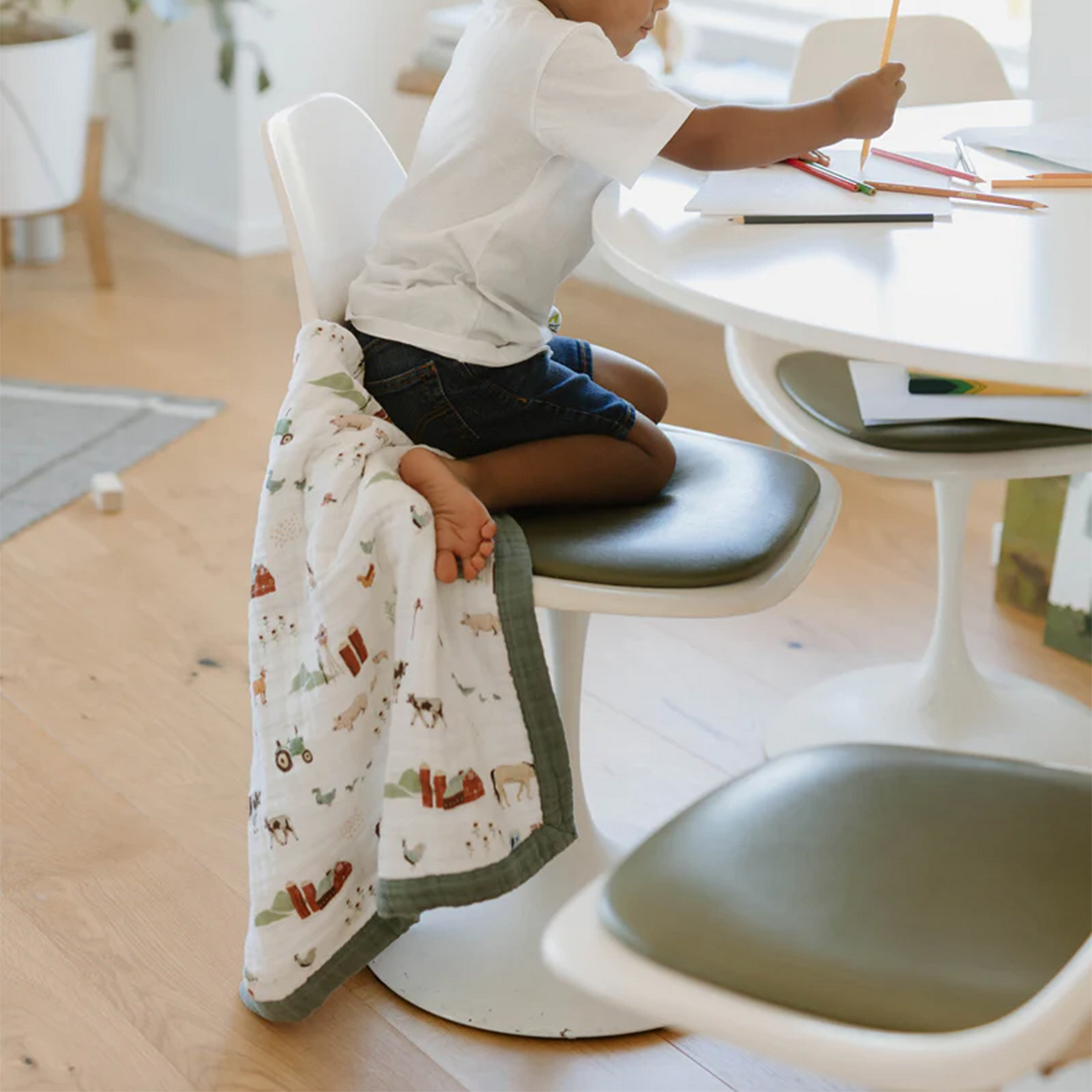 Keep your baby cozy and charming with the Little Unicorn Cotton Muslin Baby Quilt in Farmyard. Made from soft, breathable 100% cotton muslin, this lightweight quilt provides a gentle layer perfect for naptime, tummy time, stroller rides, or crib use. The playful Farmyard print features adorable farm animals and whimsical designs, adding a fun and cheerful touch to your nursery decor. Durable, machine washable, and soft to the touch, this quilt is designed for everyday use and grows with your little one.