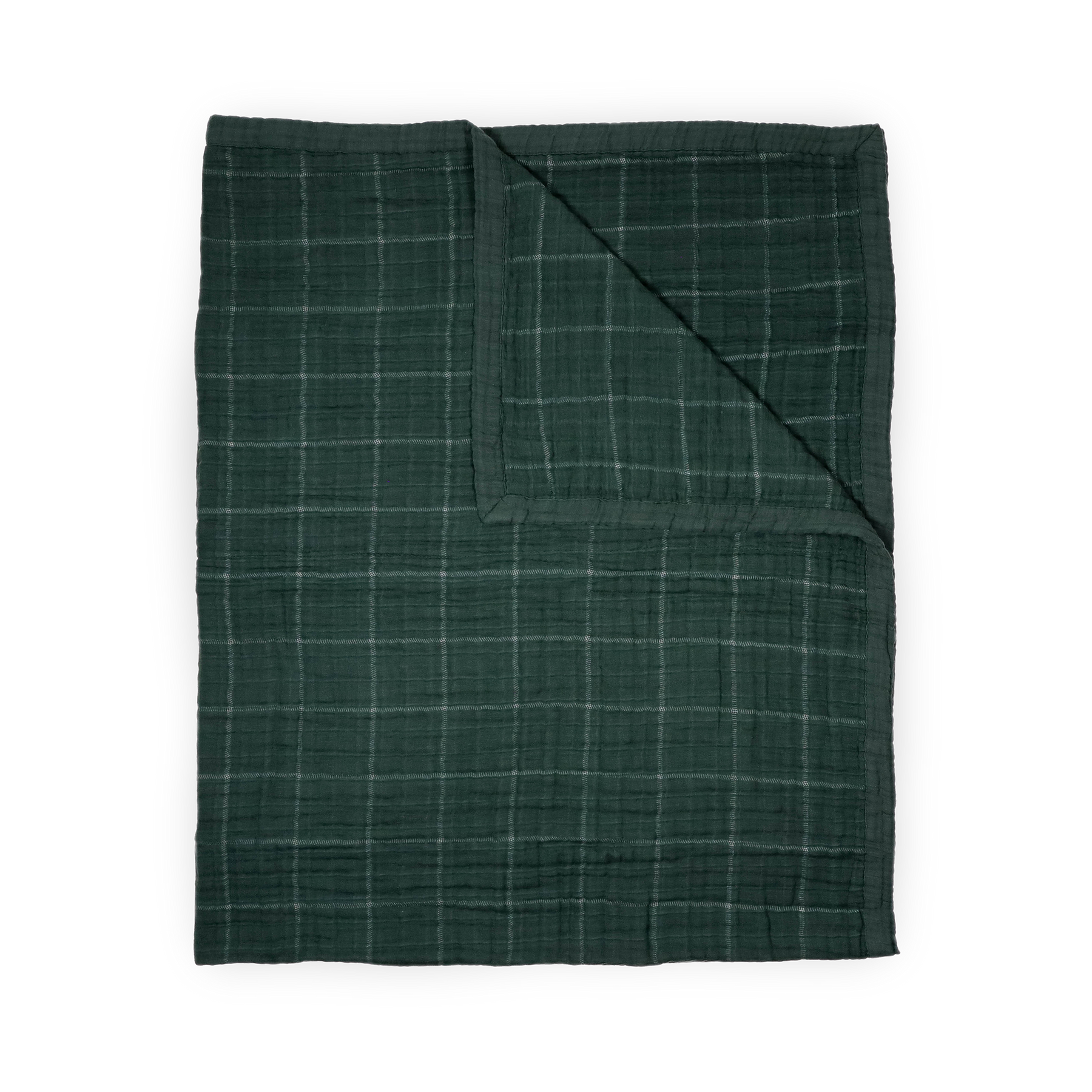Add warmth and style to your nursery with the Little Unicorn Cotton Muslin Quilted Throw in Evergreen Plaid. Made from soft, breathable cotton muslin with a quilted design, this throw provides cozy comfort for your baby during naps, stroller rides, or playtime. The classic Evergreen Plaid pattern adds a timeless, stylish touch to any nursery or home decor.