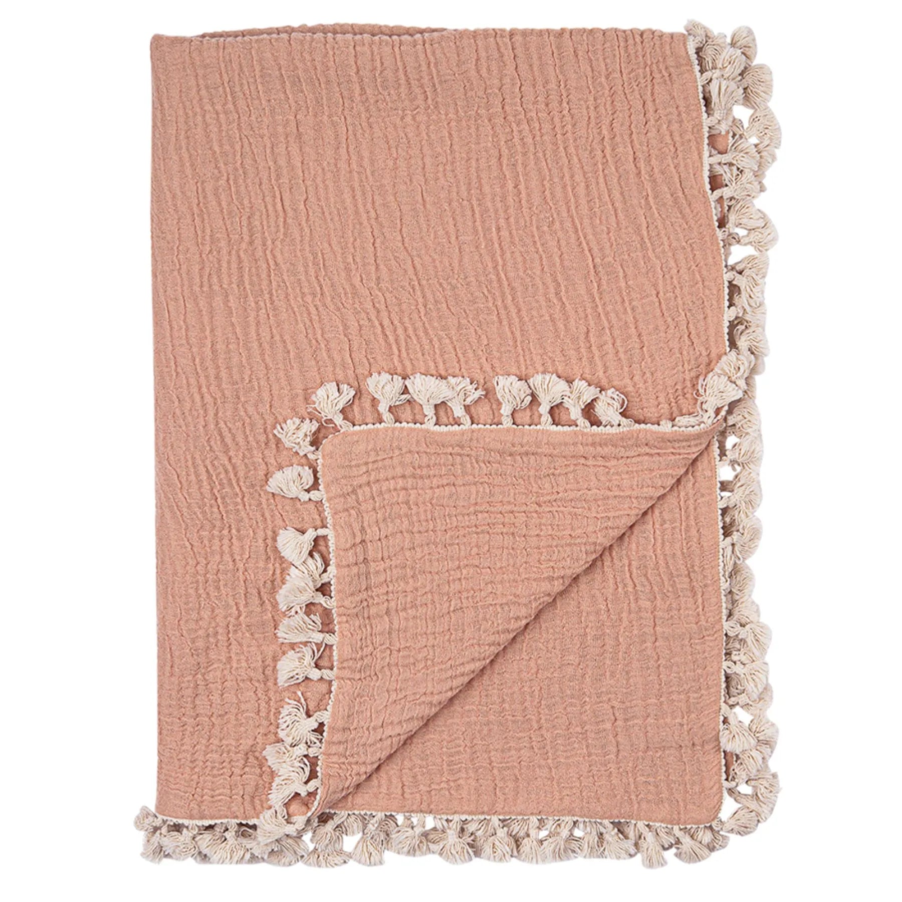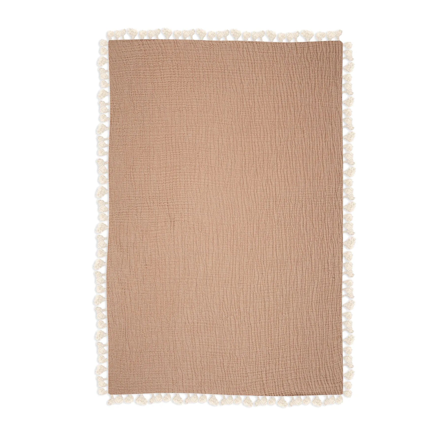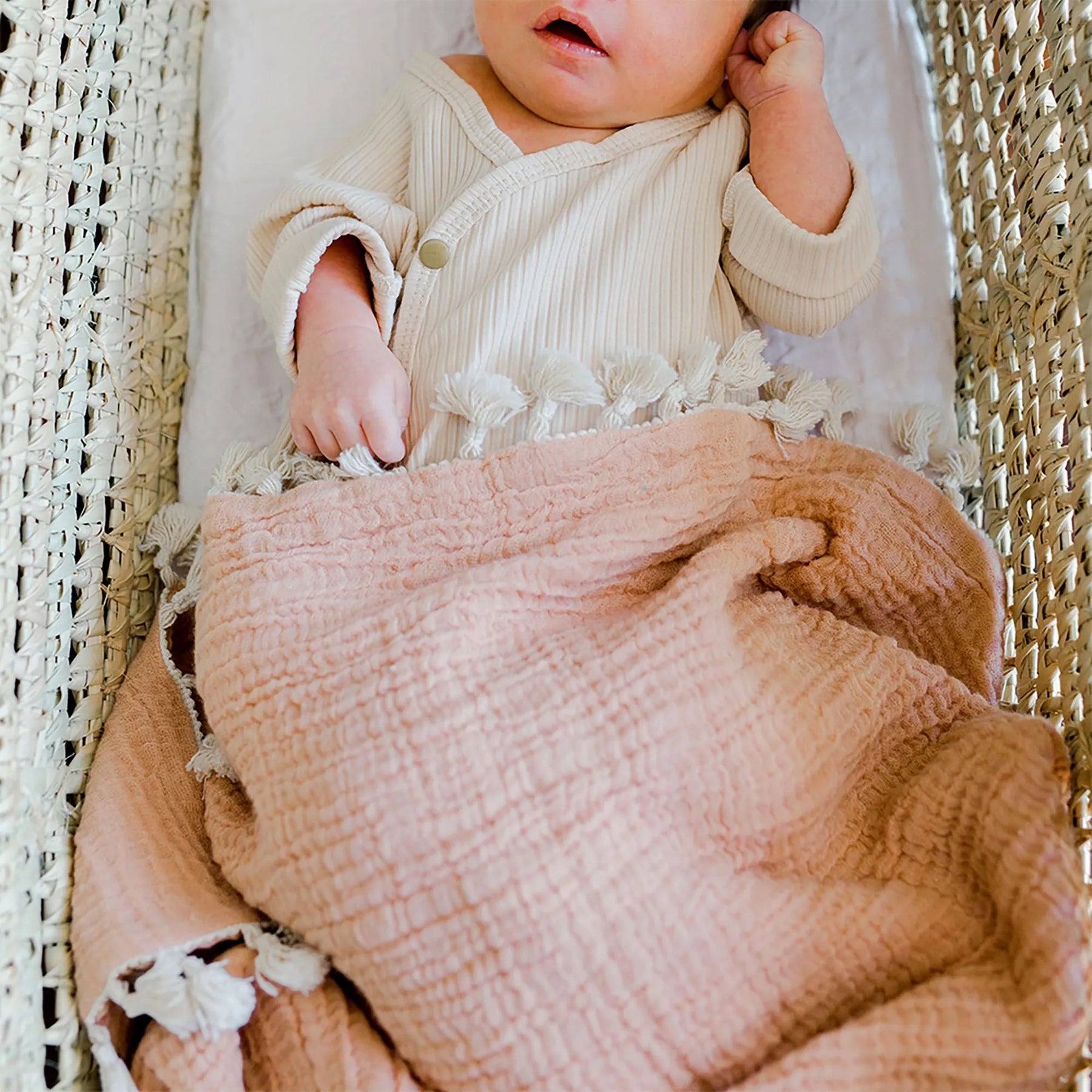 Discover the enchanting allure of the desert with our 6-layer muslin baby blanket! This blanket exudes style and comfort, with a dainty fringe trim for an added touch of sophistication. It's lightweight and ideal for leisurely strolls or playtime in the nursery.