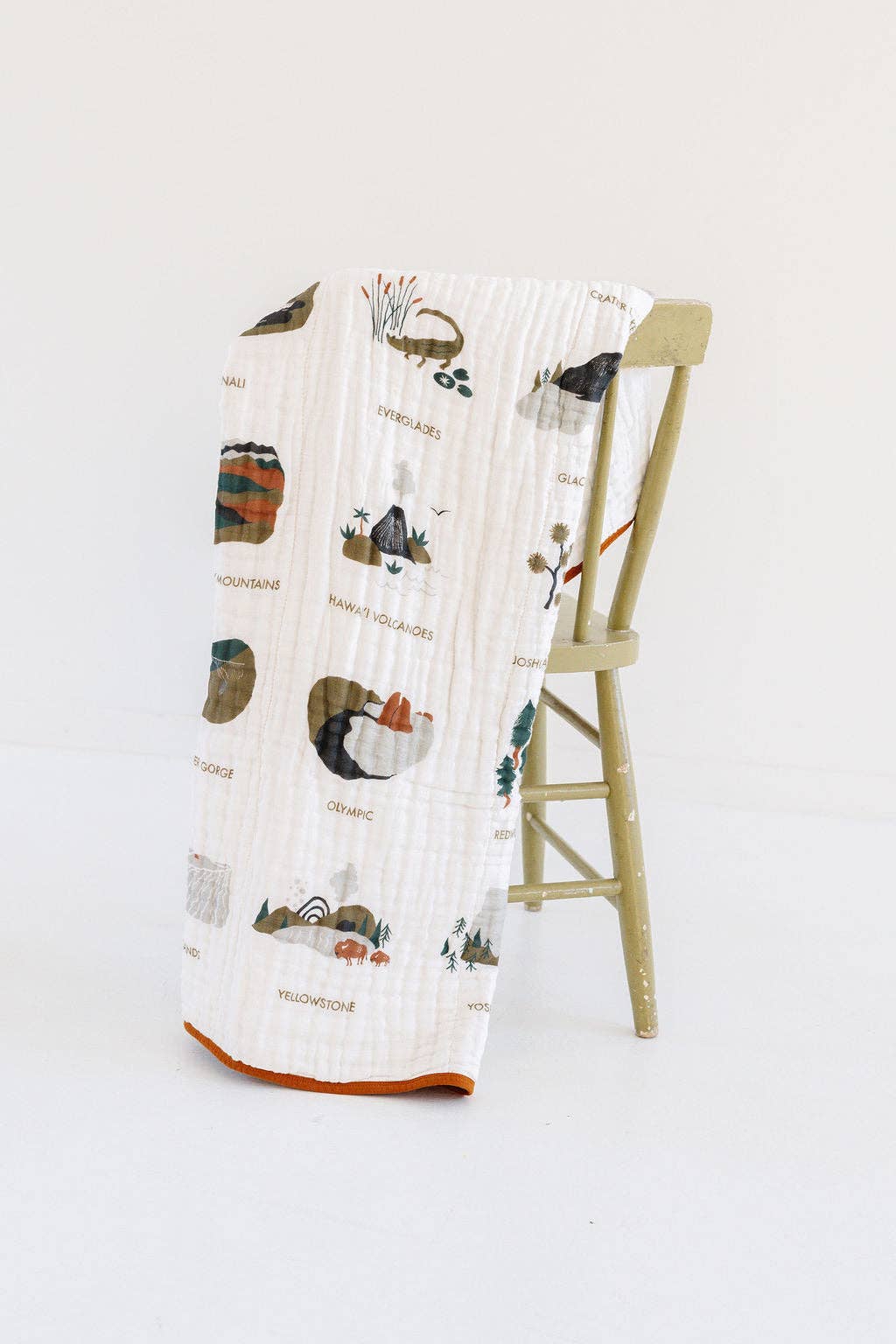 Create a cozy space inspired by adventure with the Clementine Kids National Parks II Quilt. Featuring a beautifully illustrated print inspired by America’s most beloved national parks, this quilt brings warmth, charm, and a love of the outdoors to nurseries, kids’ rooms, and play spaces.