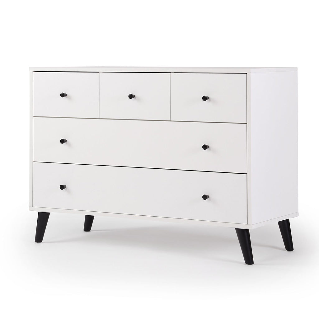 The dadada Austin 5-Drawer Dresser is a true nursery showstopper! Durable enough to stick around from infancy through childhood, this gorgeous children's dresser will look great and last years to come. Whether it's shining alone or paired with the matching Austin Crib, it's sure to tie your baby's room together.