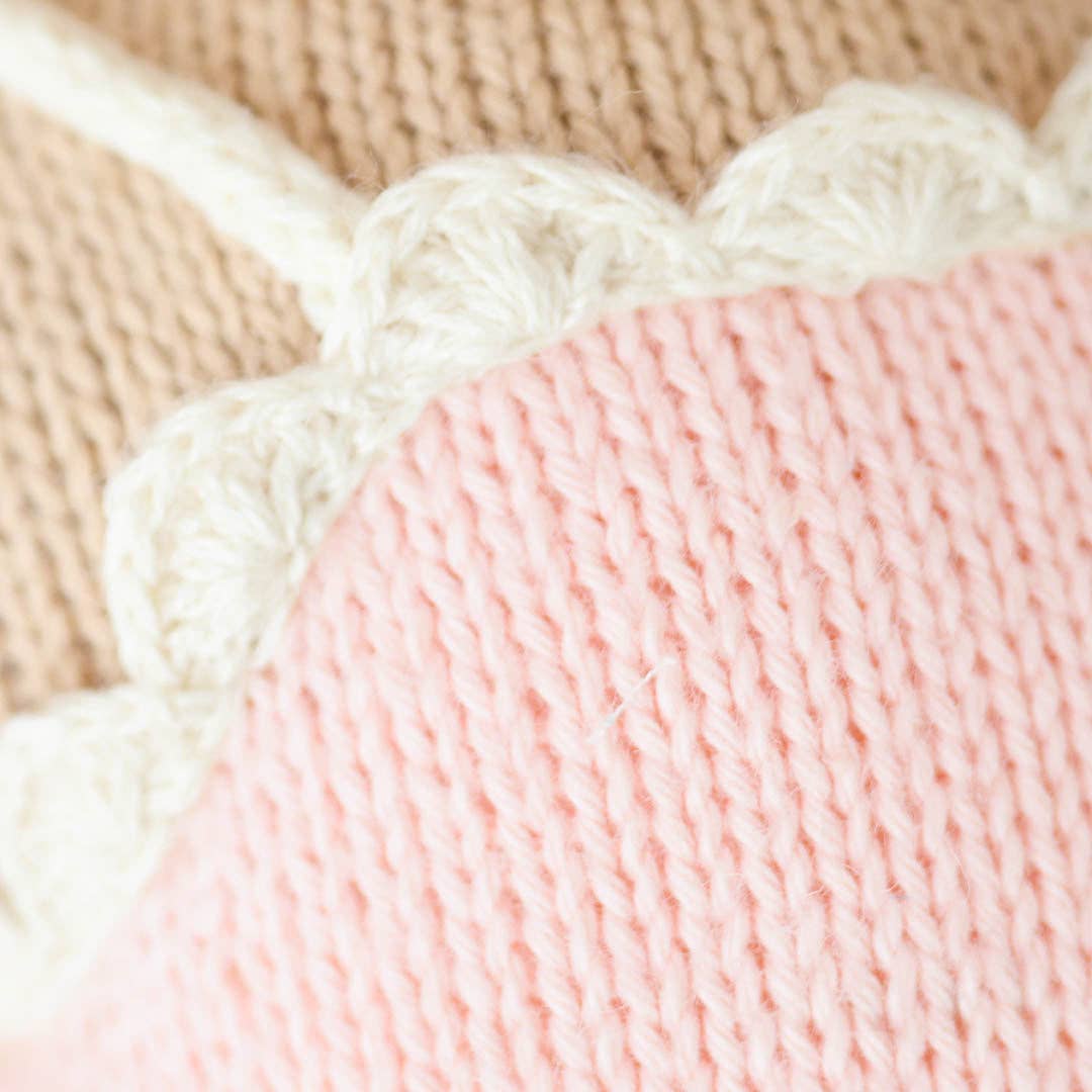 The Cuddle + Kind Ava the Cow doll is lovingly hand-knit with exquisite detail and heirloom quality craftsmanship. Every purchase provides 10 meals to children in need and supports artisans in Peru with fair trade income. Perfect for gift-giving, nursery décor, or cherished playtime, Ava is designed to be treasured for years to come.