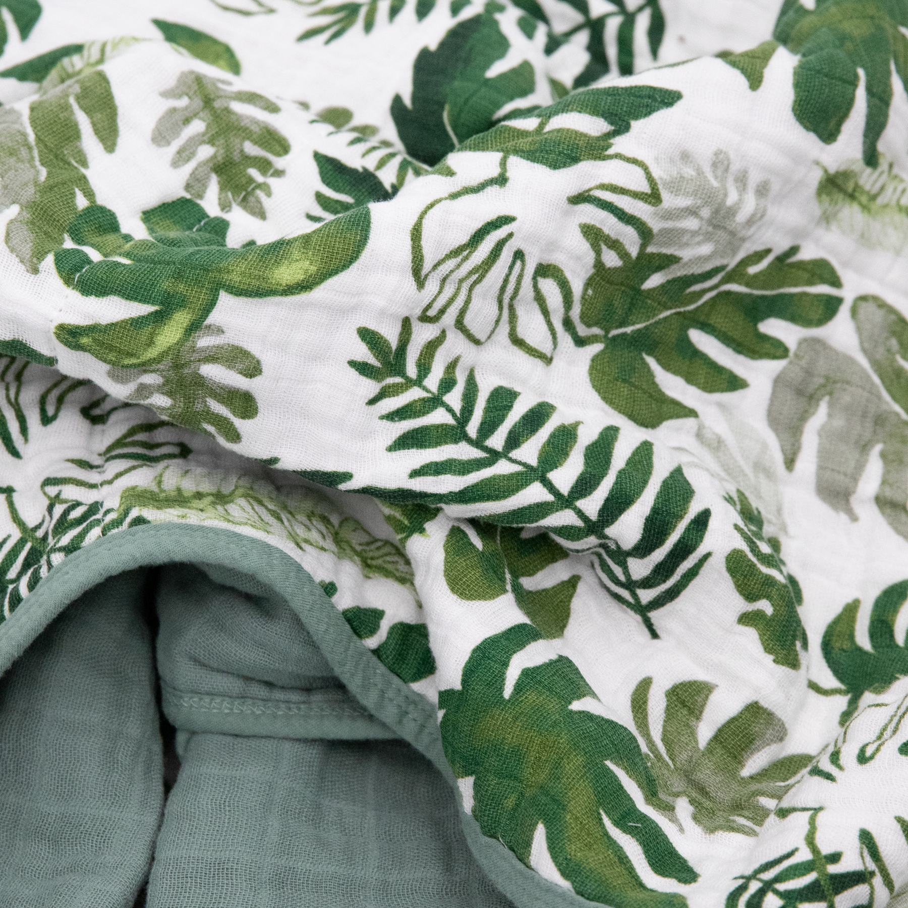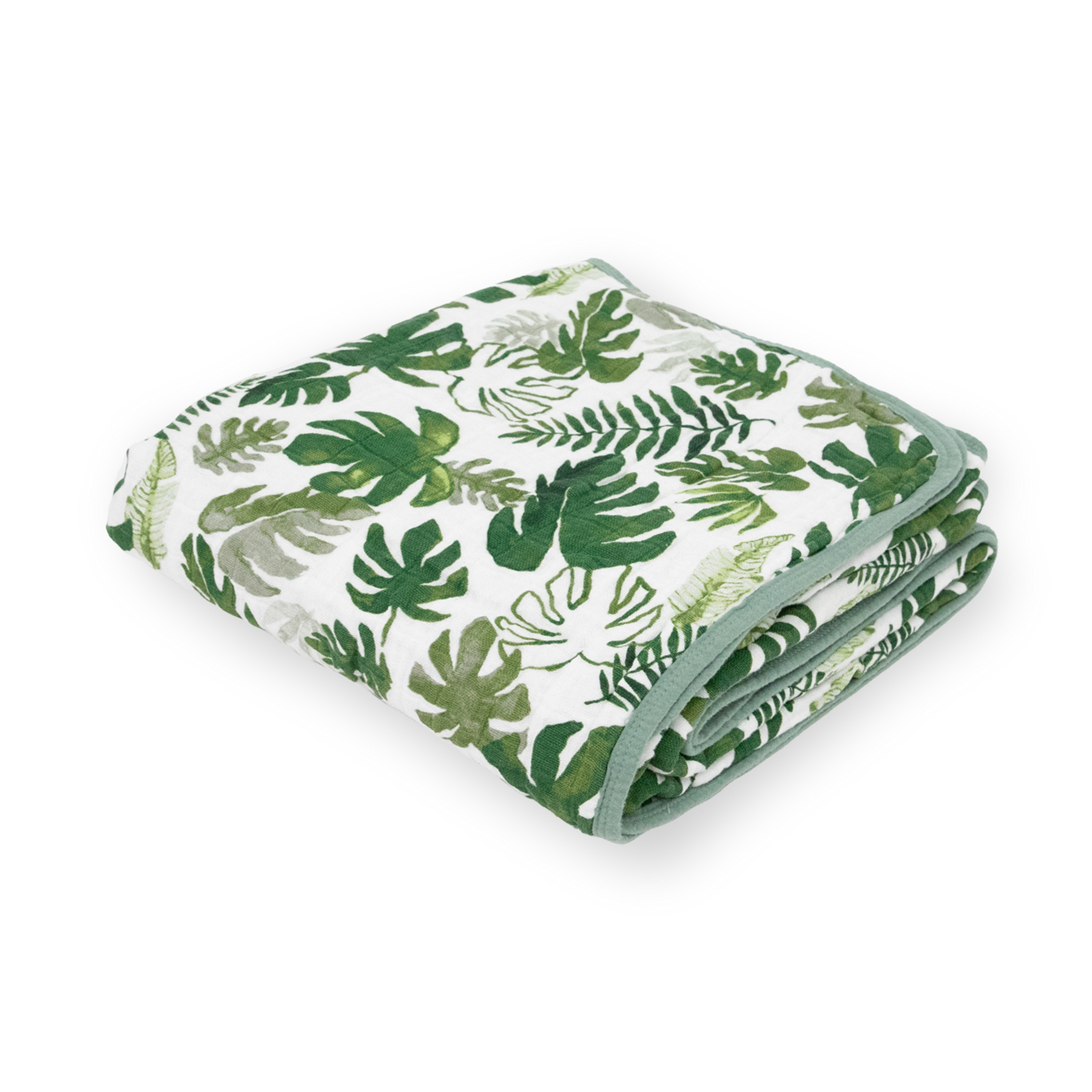 Wrap your baby in comfort and style with the Little Unicorn Original Cotton Muslin Quilt in Tropical Leaf. Made from ultra-soft, breathable cotton muslin, this lightweight quilt is perfect for swaddling, tummy time, stroller rides, or nap time. The Tropical Leaf print brings a fresh, modern, and playful touch to your nursery essentials.