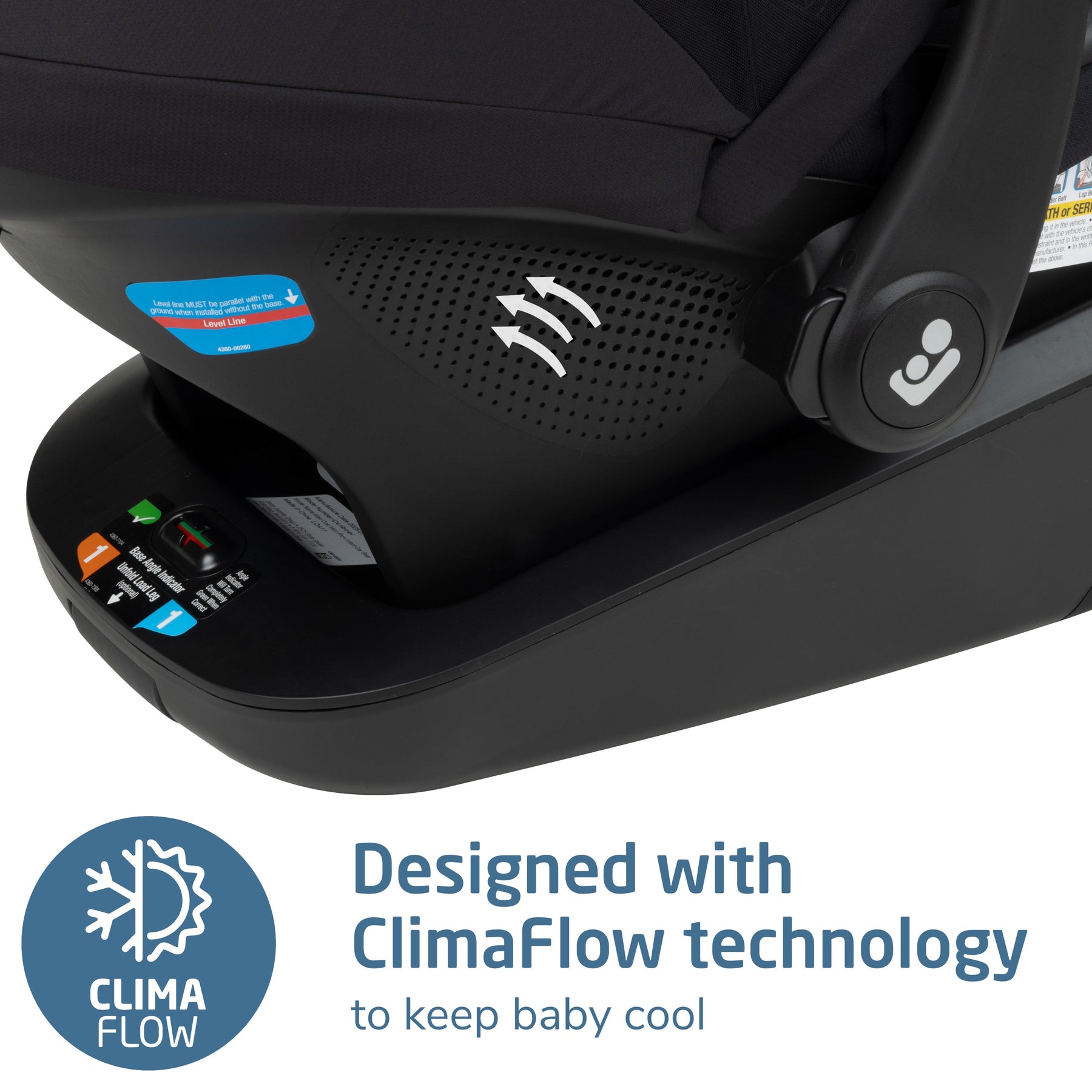 We factor your baby’s comfort as key, which is why the infant car seat carrier shell is designed with ClimaFlow™ technology for added ventilation to help keep your baby cooler. Extra plush padding on the removable infant head and lumbar inserts provides a secure and cozy ride. The ventilated canopy includes a flip-out extension when baby could use some extra shade.