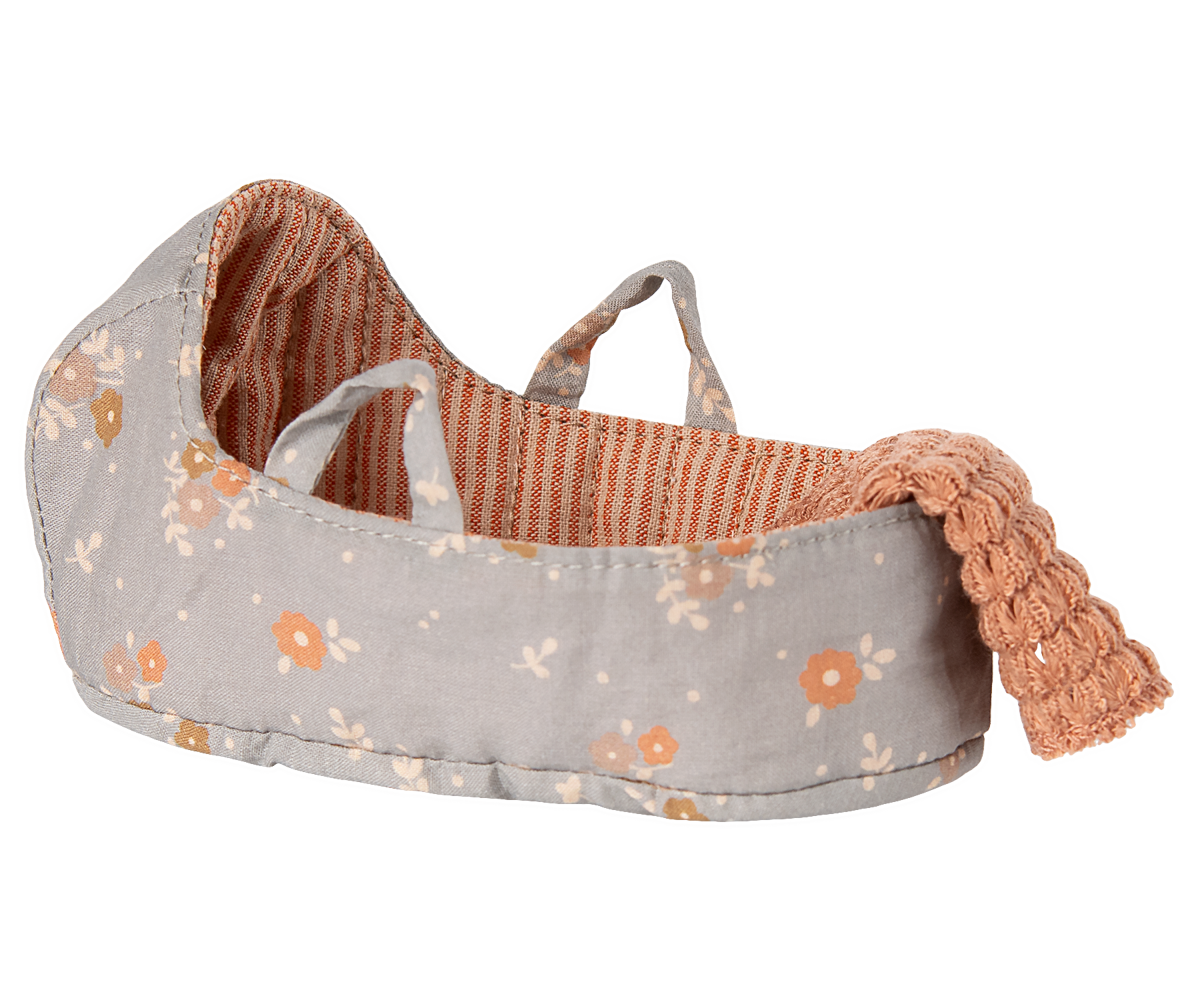 This soft, fabric carry cot makes it easy to bring your micro-sized Maileg friends everywhere. Designed as a snug place to rest on the go, it fits all Micro Rabbits and Bunnies perfectly and adds a sweet touch of realism to playtime.