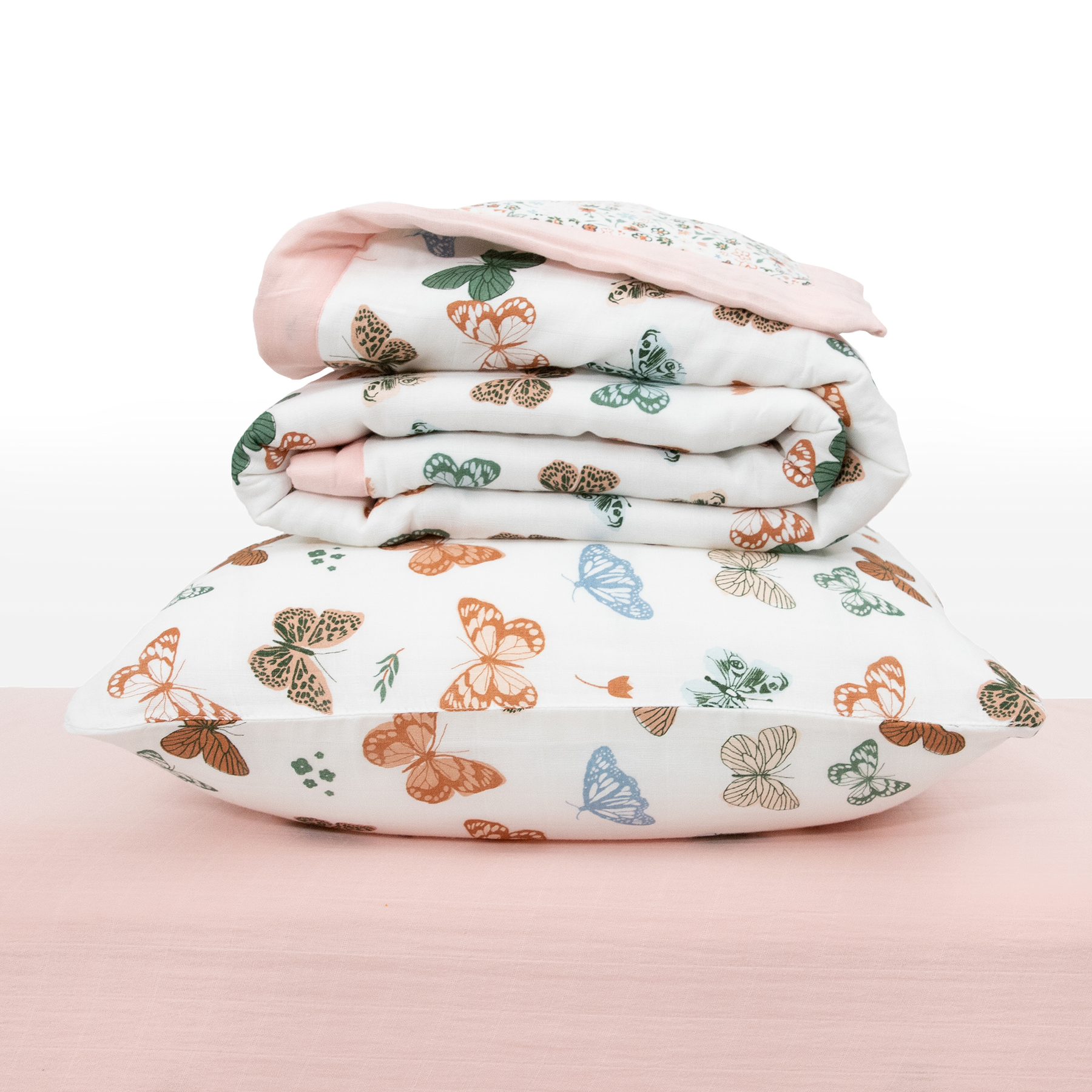Cotton Muslin Toddler Bedding 3 Piece Set - Butterflies