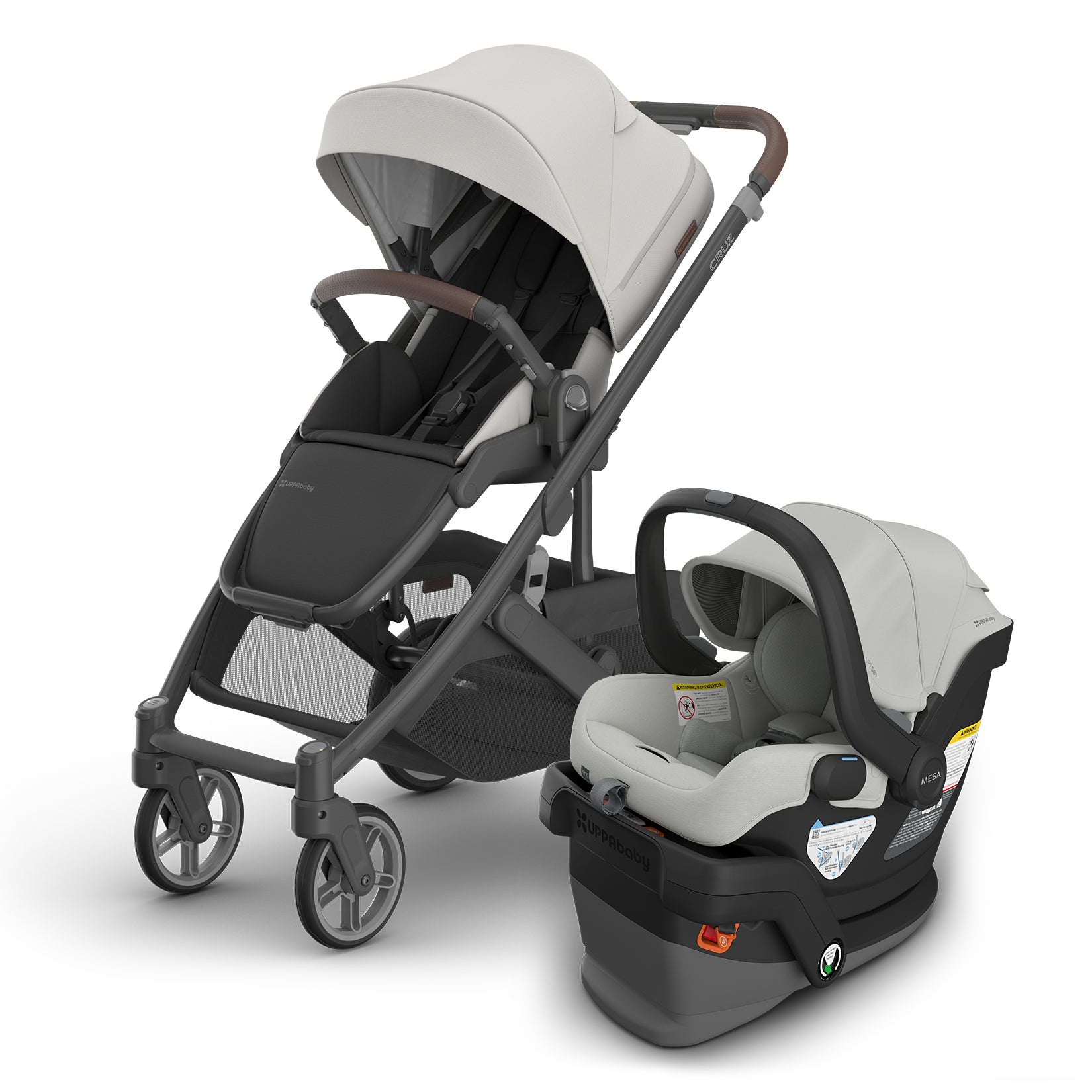 The UPPAbaby Cruz V3 full-sized stroller + Mesa V3 Infant Car Seat is the ideal travel system for your new or growing family. Experience style, portability, convenience, and safety to make your busy life that much easier! With innovative security features and more, you and your little one will enjoy smooth, safe adventures wherever life takes you.
