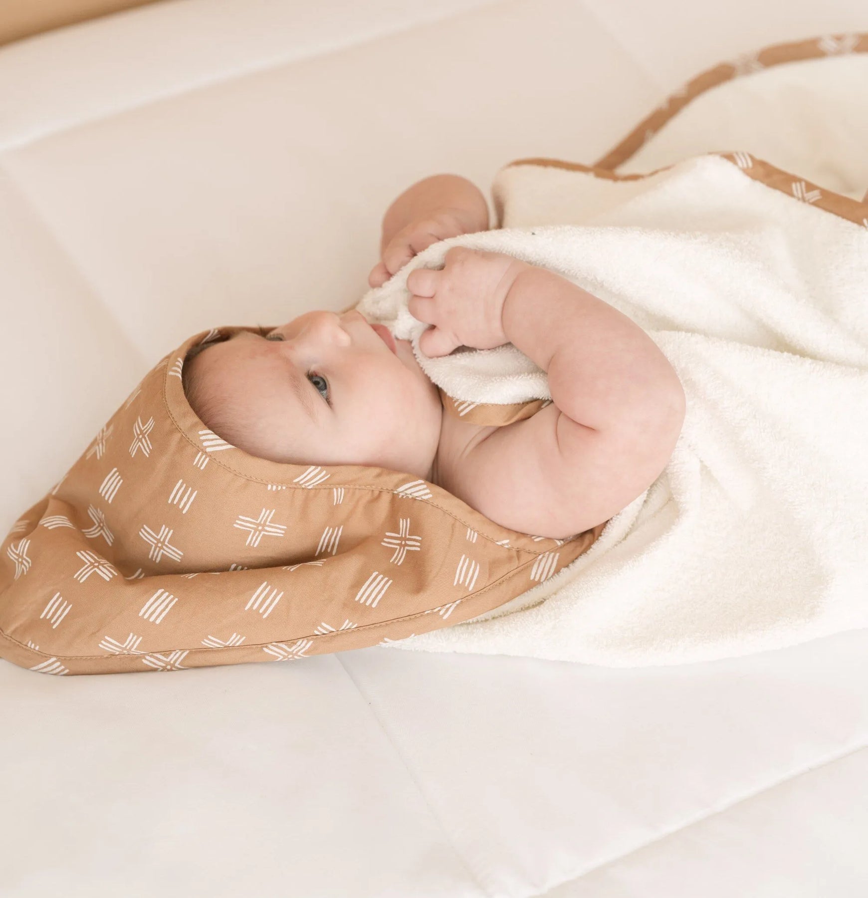 Featuring a charming copper-toned trim and timeless design, the Ezra Hooded Towel is both practical and beautiful—ideal for everyday use or as a thoughtful baby shower gift. Its generous size ensures it will grow with your baby from newborn through toddlerhood.