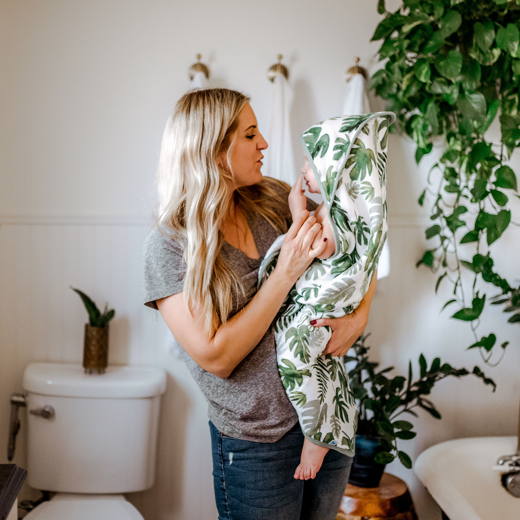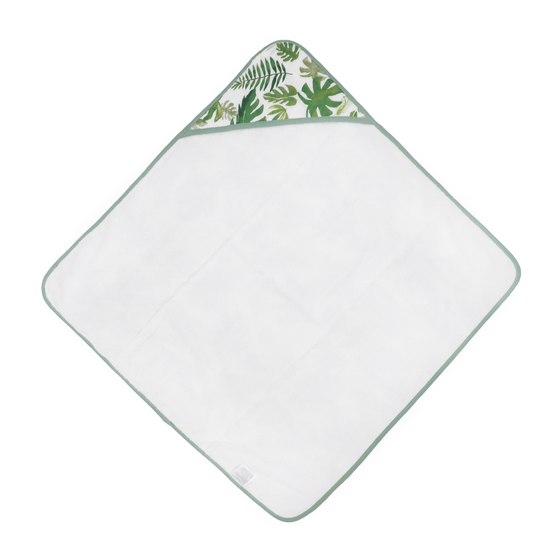 Make bath time a tropical escape with the Little Unicorn Infant Hooded Towel - Tropical Leaf. Crafted from premium cotton muslin and ultra-soft terry cloth, this cozy towel keeps your little one warm and dry after baths, swims, or beach days. The hooded design ensures extra comfort, while the vibrant Tropical Leaf print adds a refreshing, nature-inspired touch.