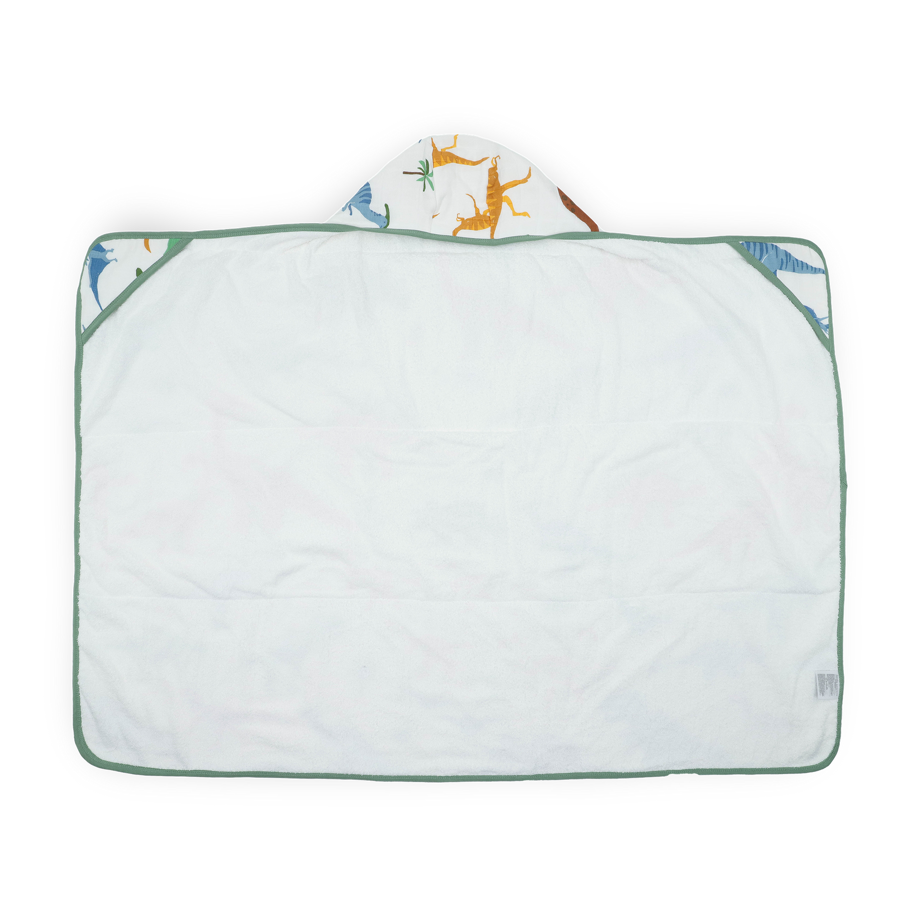 Featuring a playful dinosaur name design, the towel adds a whimsical and educational touch that toddlers will love. The generously sized hood provides extra warmth and helps keep the towel in place, making it perfect for everyday use at home or on the go.