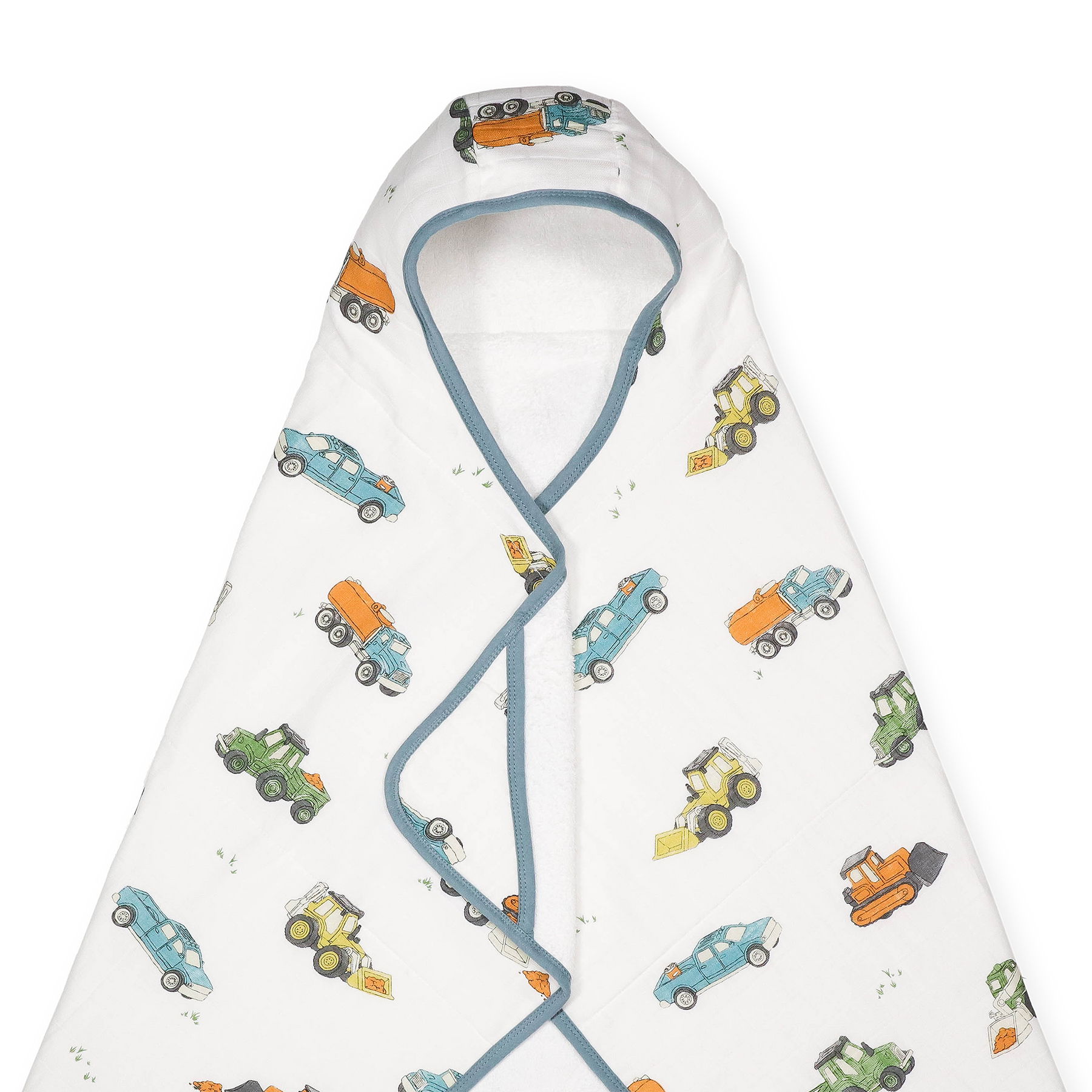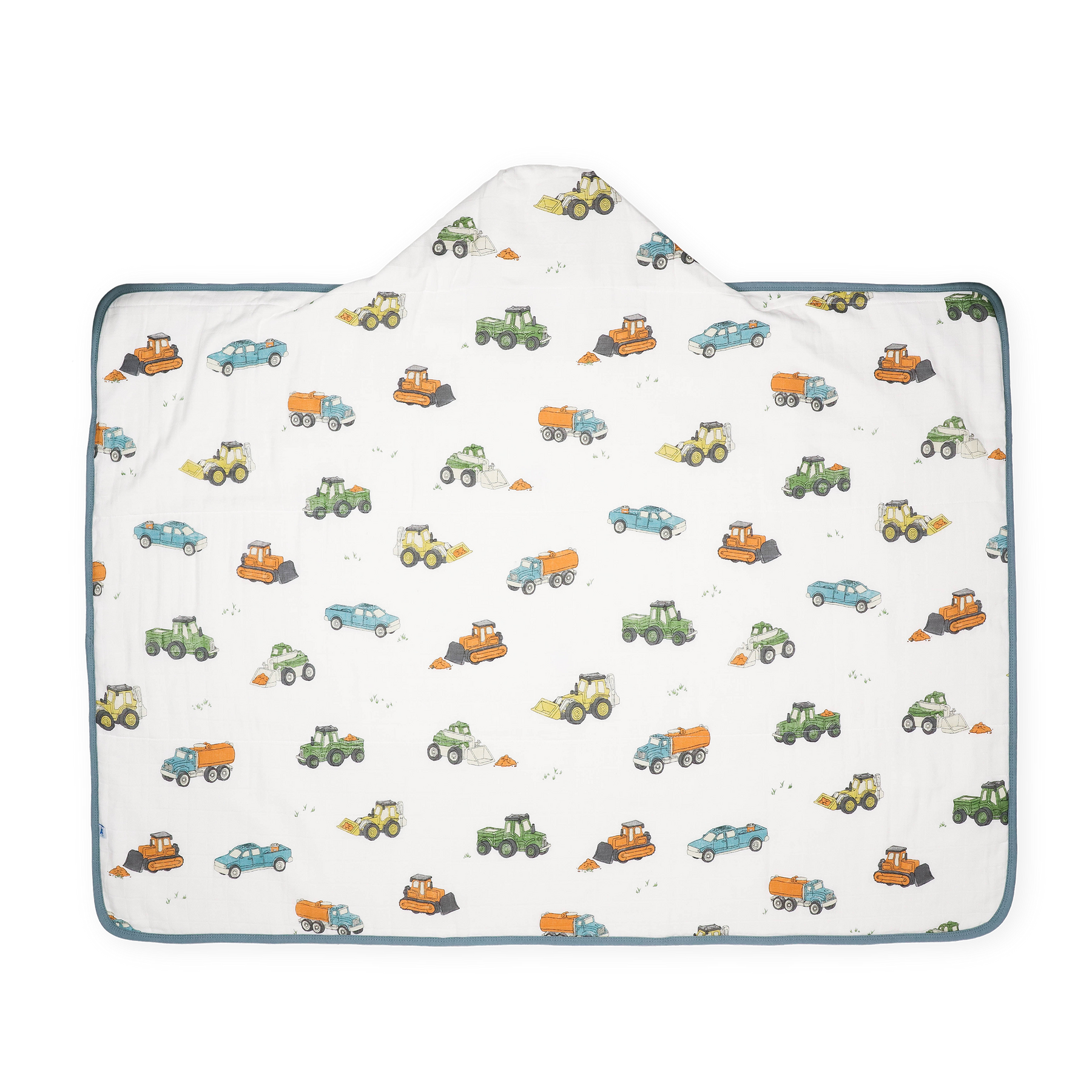 Featuring a playful work trucks design, the towel adds a fun, whimsical touch that toddlers will love. The generously sized hood provides extra warmth and helps keep the towel in place, making it perfect for daily use at home or on the go.