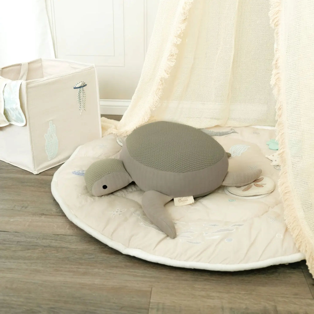 Add a touch of ocean-inspired charm to your nursery with the Cove Turtle stuffed animal. Soft knit textures make it perfect for snuggles, while its playful turtle design doubles as a decorative accent for beds, reading nooks, or play areas. Ideal for creating lasting memories, this cuddly plush is a keepsake your child will adore.