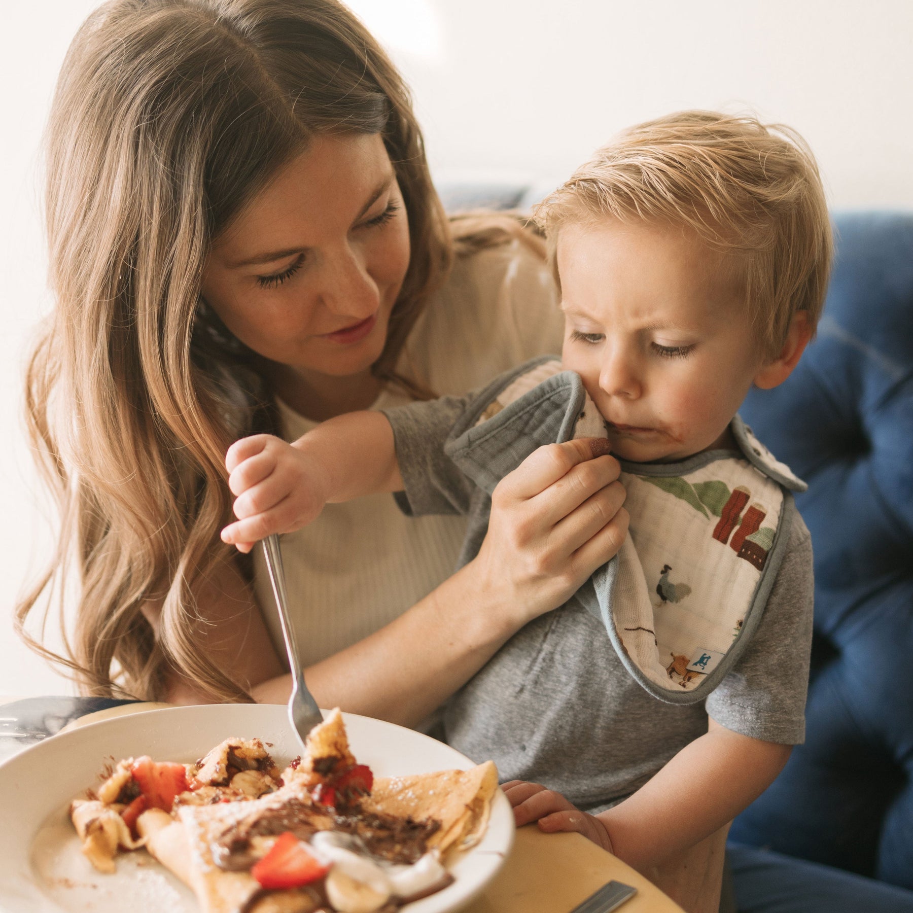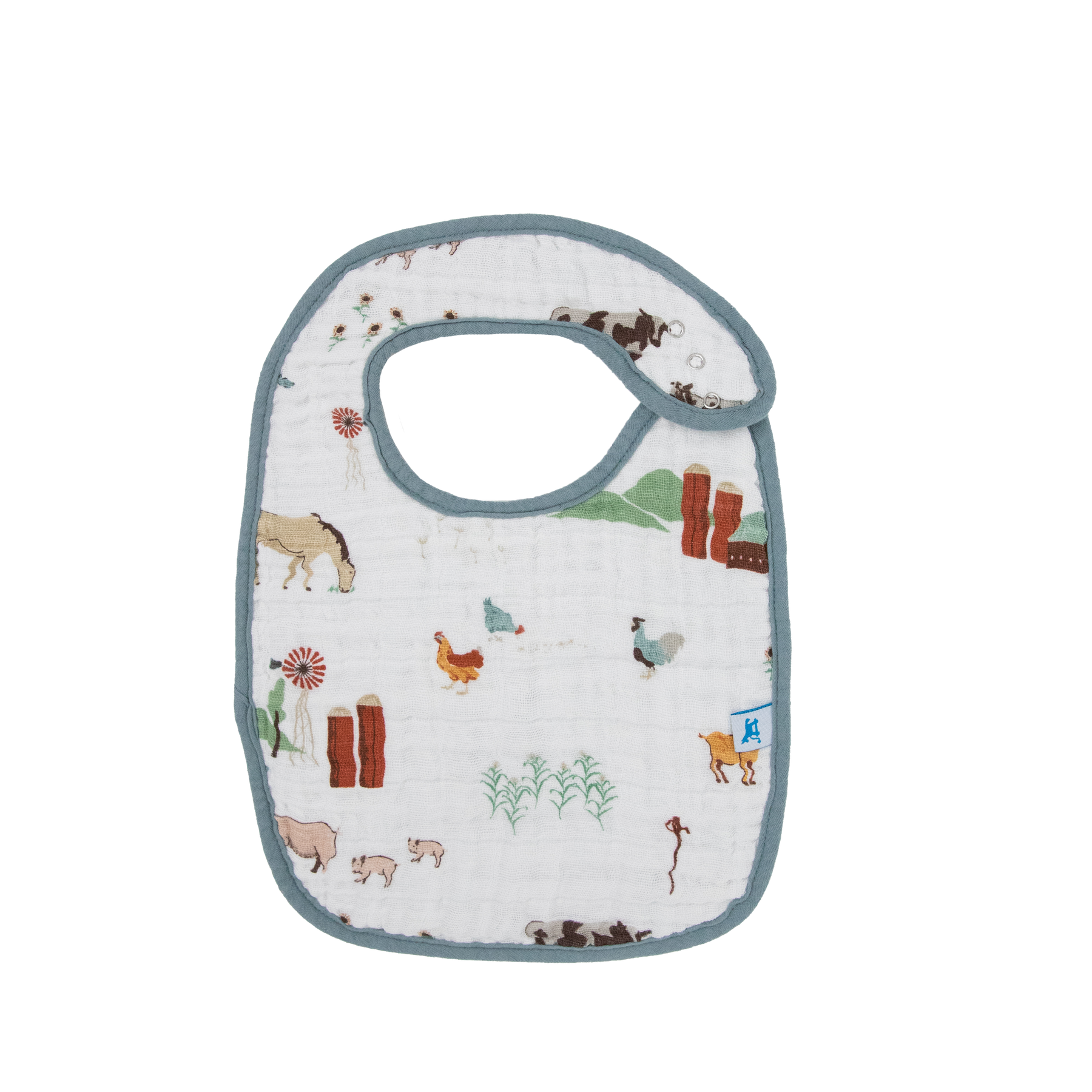• Includes 3 premium cotton muslin bibs in the Farmyard print