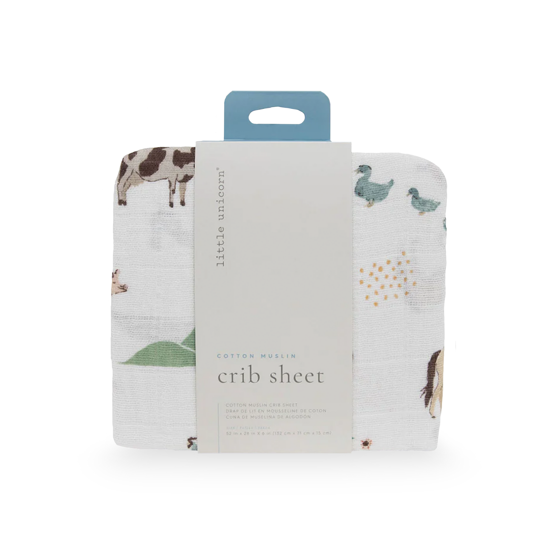 Ensure your baby sleeps in comfort and style with the Little Unicorn Cotton Muslin Crib Sheet in Farmyard. Made from 100% soft, breathable cotton muslin, this sheet is gentle on delicate skin while providing a cozy, lightweight layer for your crib mattress. The playful Farmyard print adds a whimsical, charming touch to any nursery.