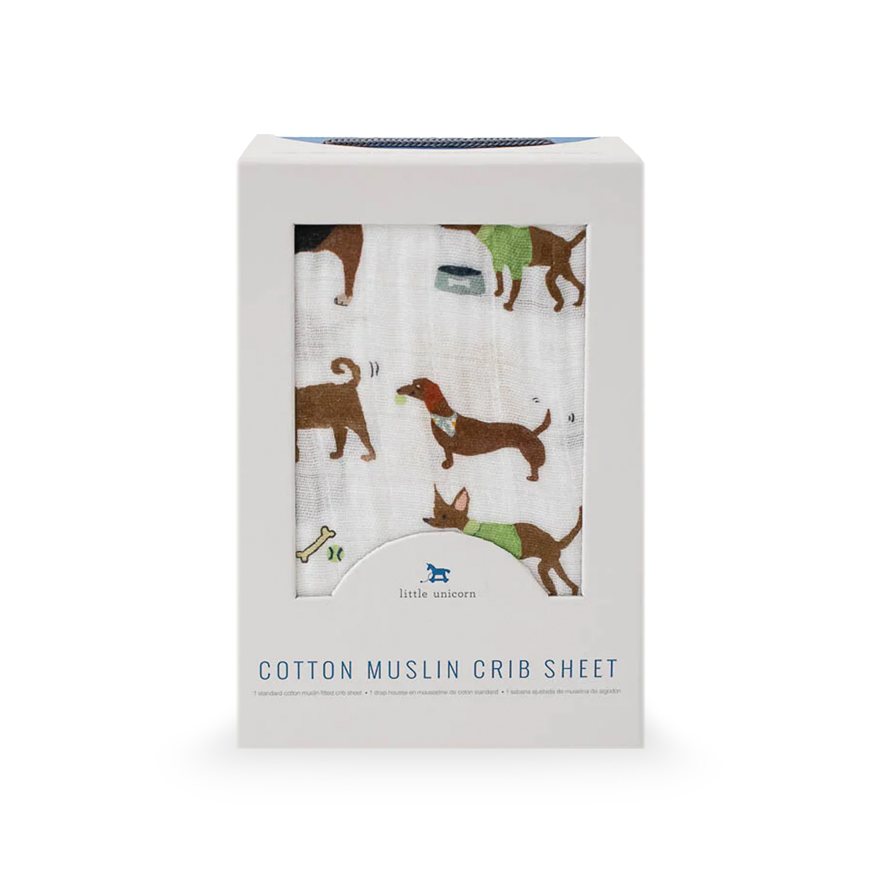 Ensure your baby sleeps in comfort and style with the Little Unicorn Cotton Muslin Crib Sheet in Woof. Made from 100% soft, breathable cotton muslin, this sheet is gentle on delicate skin while providing a cozy, lightweight layer for your crib mattress. The playful Woof print adds a fun, pet-inspired touch to any nursery.
