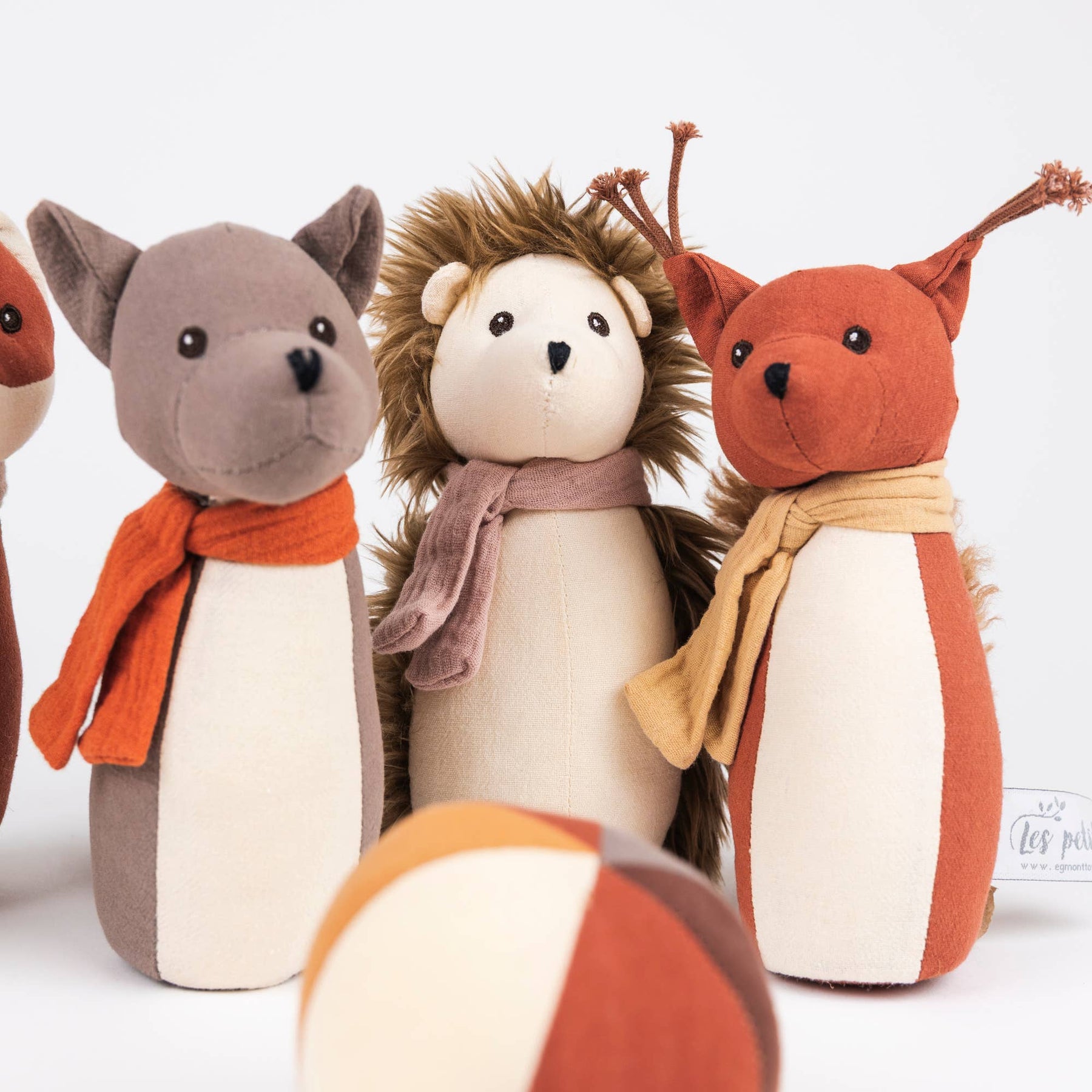 Includes: 5 plush forest animal pins and 1 soft ball