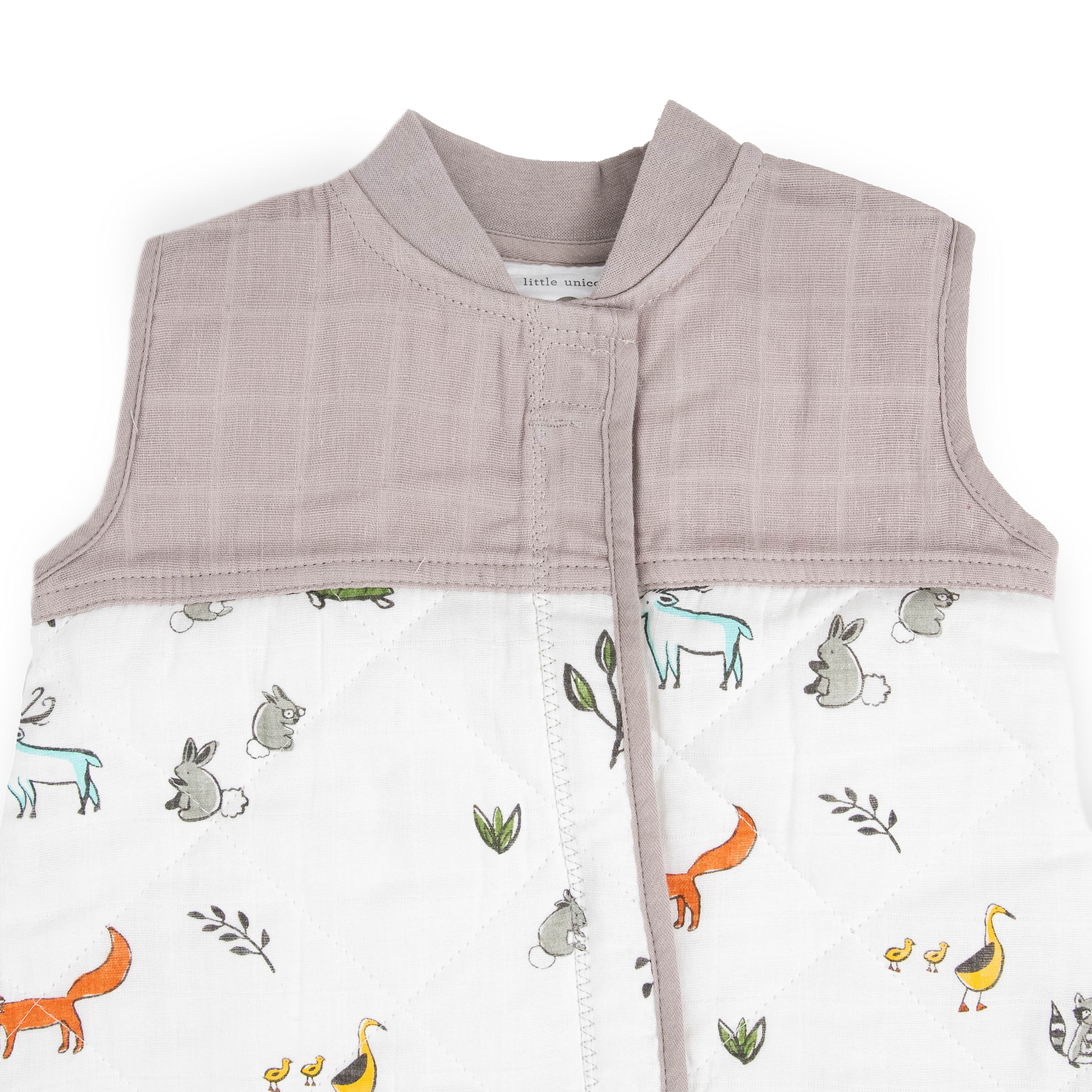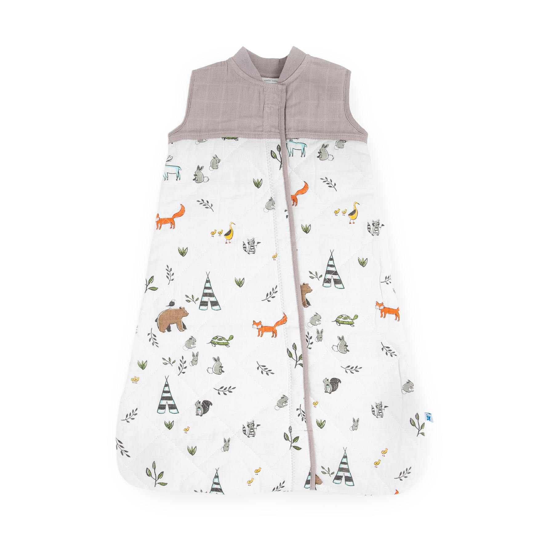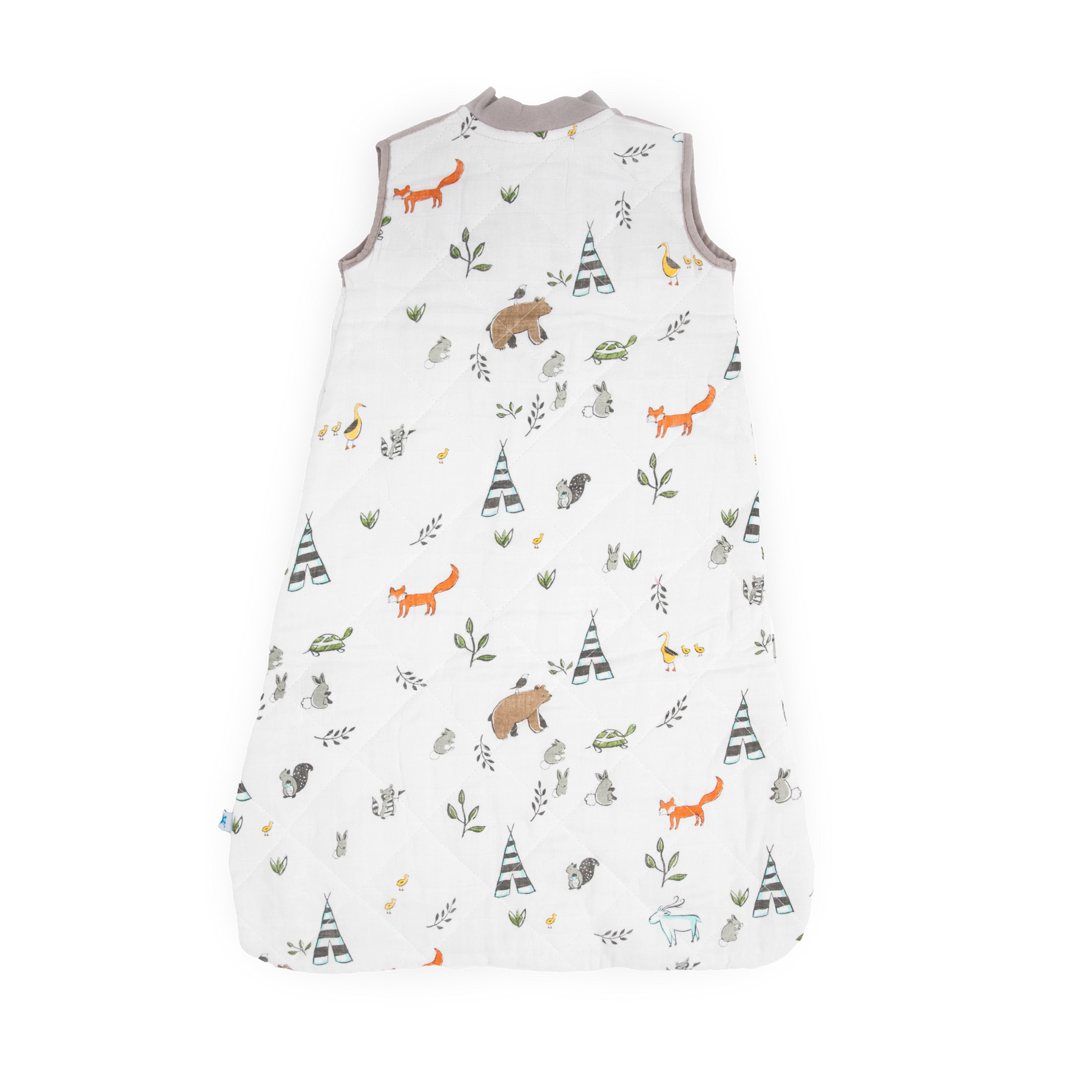 Designed for ultimate comfort, the Little Unicorn Quilted Sleep Bags in the charming Forest Friends pattern offer a secure alternative to loose blankets during colder seasons. The quilted cotton muslin construction traps warmth while maintaining breathability, ensuring your little one stays at the perfect temperature all night. Parents will appreciate the convenient two-way zipper for midnight diaper changes and the machine-washable fabric that becomes increasingly softer with each wash. Our signature hand-painted designs add a touch of whimsy to your baby's sleep routine.
