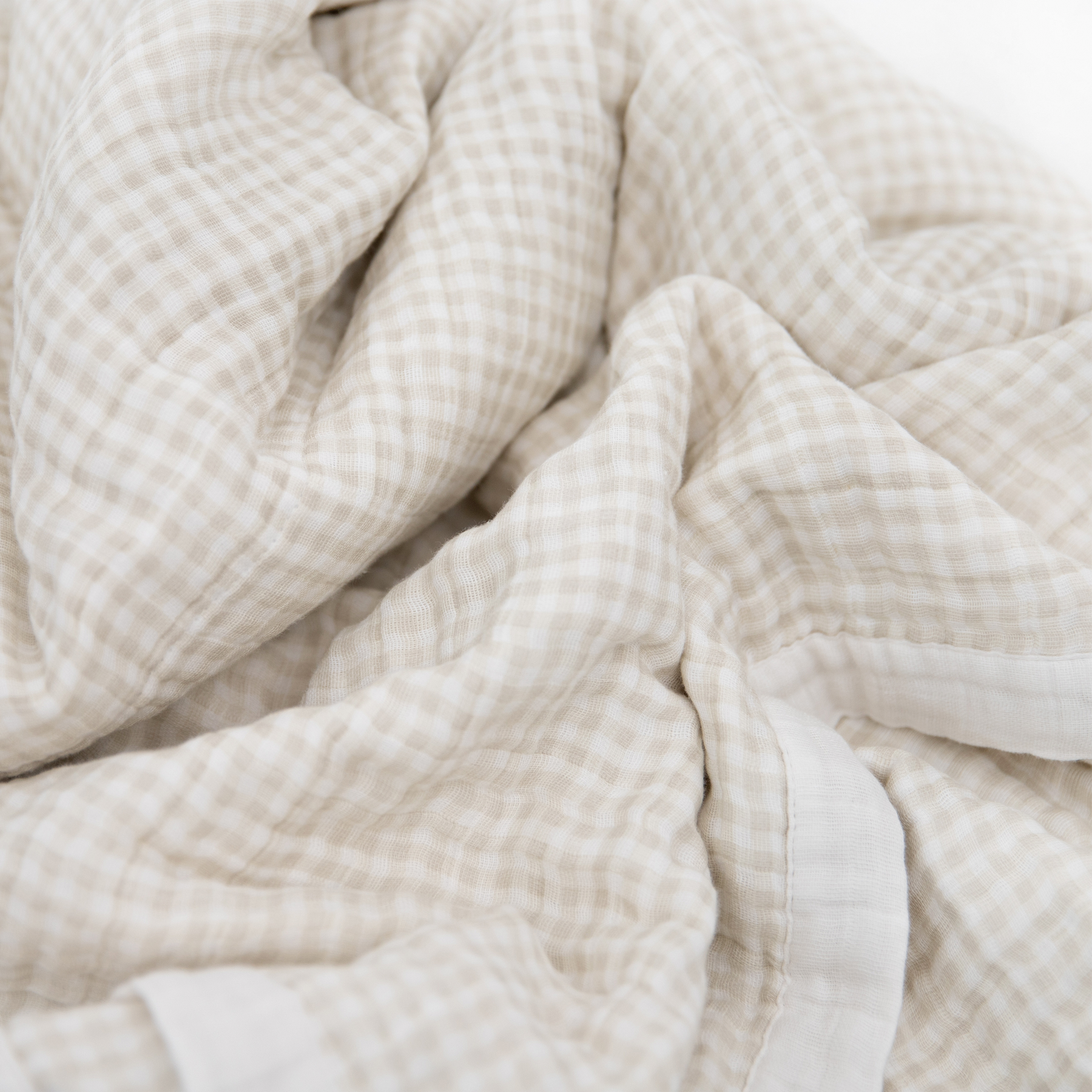 Bring timeless style and cozy comfort to your home with the Little Unicorn Cotton Muslin Quilted Throw – Tan Gingham. Crafted from four layers of premium 100% cotton muslin, this breathable throw offers lightweight warmth that’s perfect for all seasons. Its soft, airy texture provides the ideal balance of comfort and durability—getting even softer with every wash.