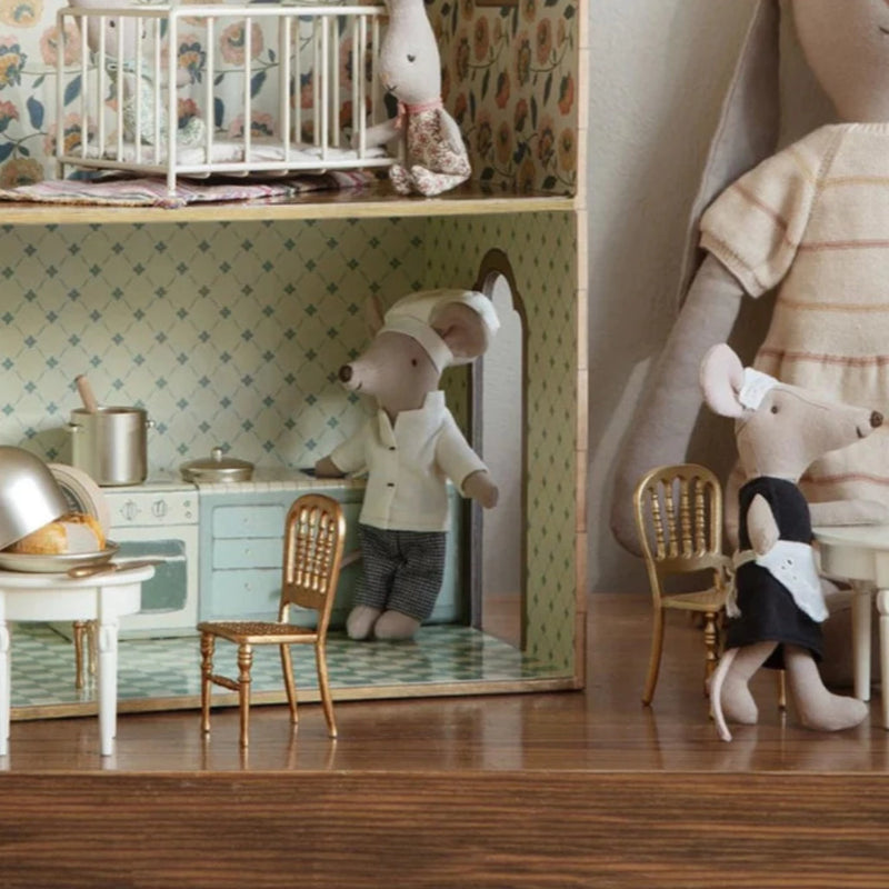 The fancy golden chair is perfect for your Maileg dollhouse. Your mice are sure to love this beautiful addition to your collection!