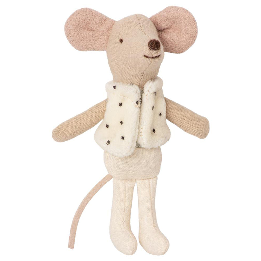 This Little Brother Mouse In Matchbox is a beloved Maileg classic. It's perfect for playtime and snuggles up cozily in its little bed. The clothes and linens are crafted from soft, printed fabrics in a lovely array of colors. Create an even more magical play experience by adding accessories!