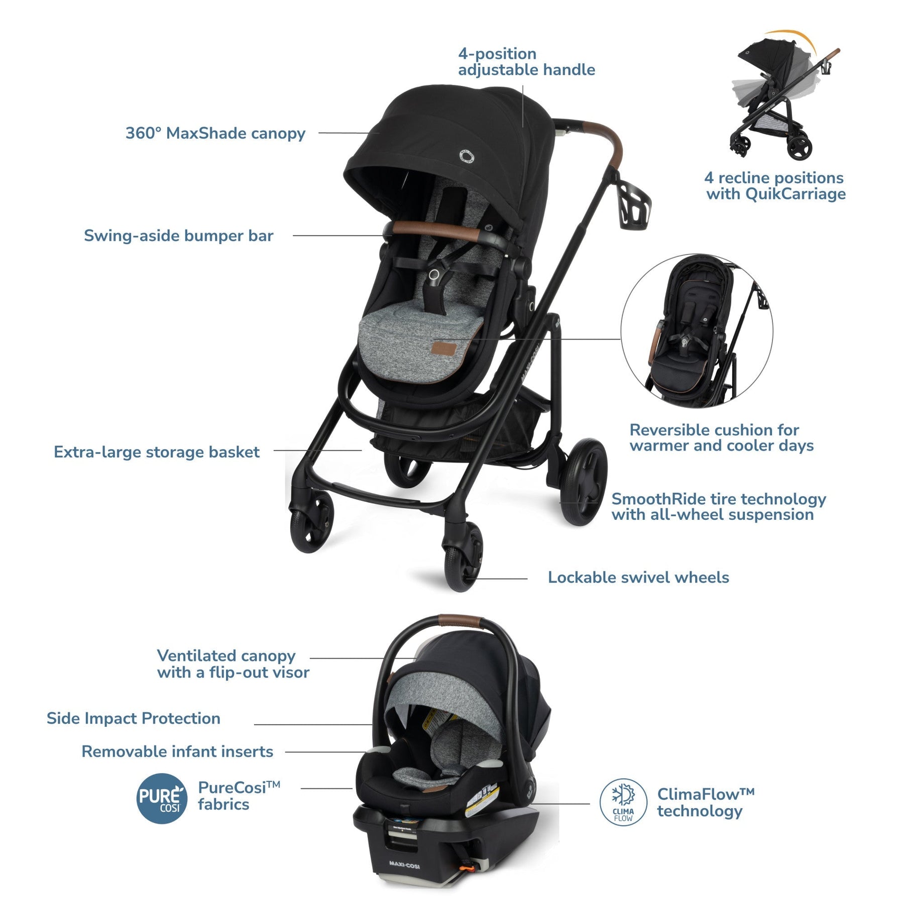 The Maxi-Cosi Tayla Travel System is a complete, all-in-one solution for modern parents who need comfort, safety, and convenience on the go. This stylish and functional stroller travel system includes a lightweight stroller and the Mico Luxe+ Infant Car Seat, ensuring your baby is safe and comfortable from the car to the sidewalk. With easy-to-use features and premium fabrics, the Tayla Travel System offers seamless travel for parents and babies alike.