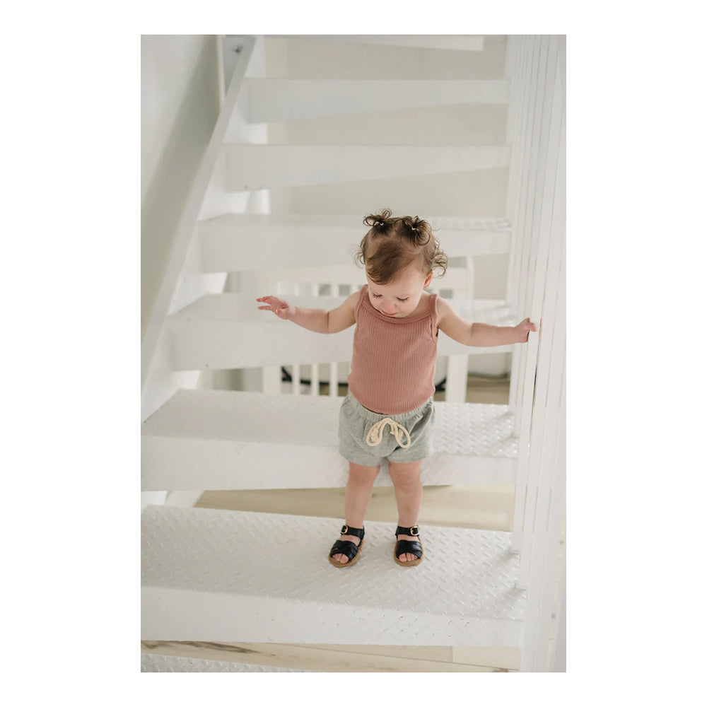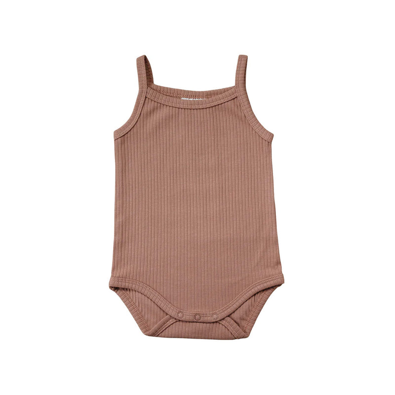 Introducing our Mebie Baby Ribbed Tank Bodysuit, the perfect summer essential! This lightweight and breathable bodysuit keeps your little one cool while providing layering options for those chilly moments. Available in Dusty Rose.