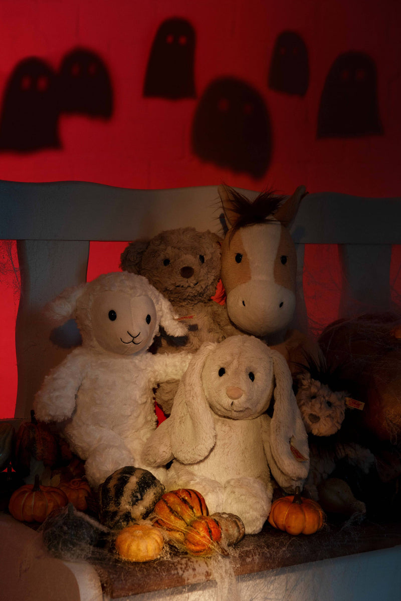 Hoppie Rabbit is a soft gray bunny plush ready to hop into your child’s heart. This cuddly companion features a pink nose, long floppy ears, and a lovable expression. With small beanbags in the bottom and paws, Hoppie can sit upright for play or display. She's machine washable and safety tested, making her perfect for everyday snuggles. Available in a variety of styles, Hoppie also features Steiff’s classic “Button in Ear” to ensure quality and authenticity.