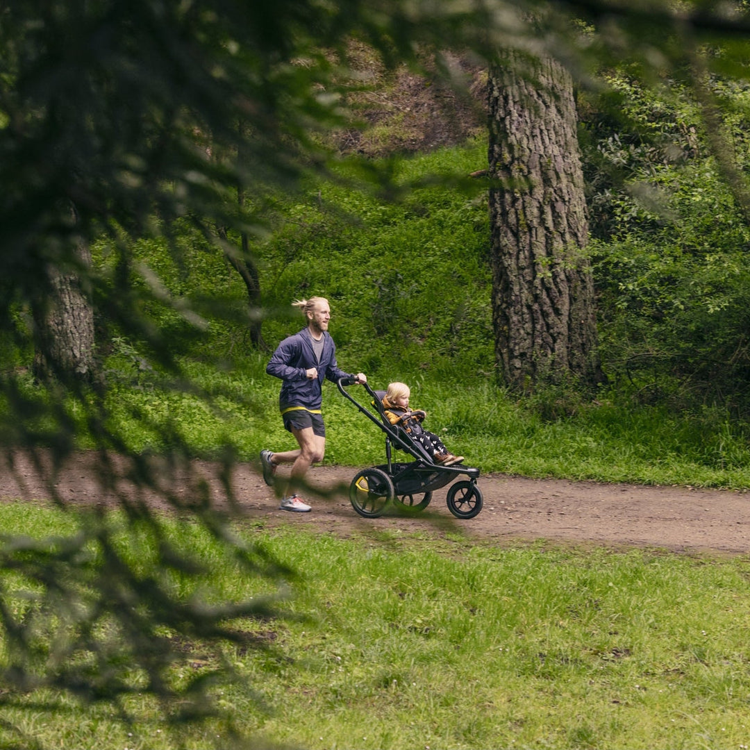 Ultra-terrain jogger rips through paths and jogging trails. Attach your infant car seat or bassinet (sold separately) to stroll with a newborn, then attach Switchback Seat to jog 6mo+.